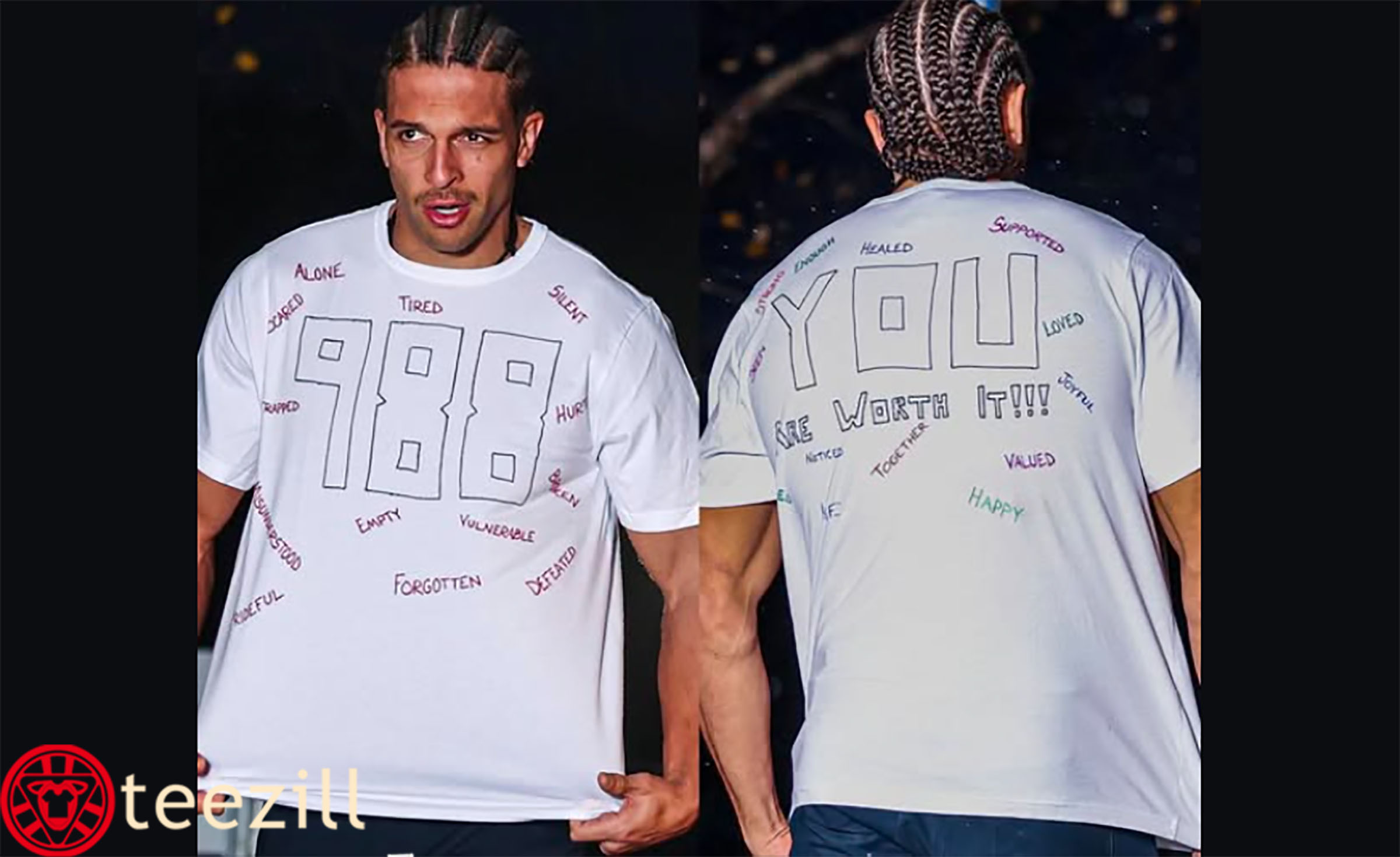 Show support, spread awareness, and stand for hope with this 988 Suicide Prevention T-Shirt inspired by Patriots wide receiver Mack Hollins, one of the NFL’s strongest advocates for mental-health awareness.