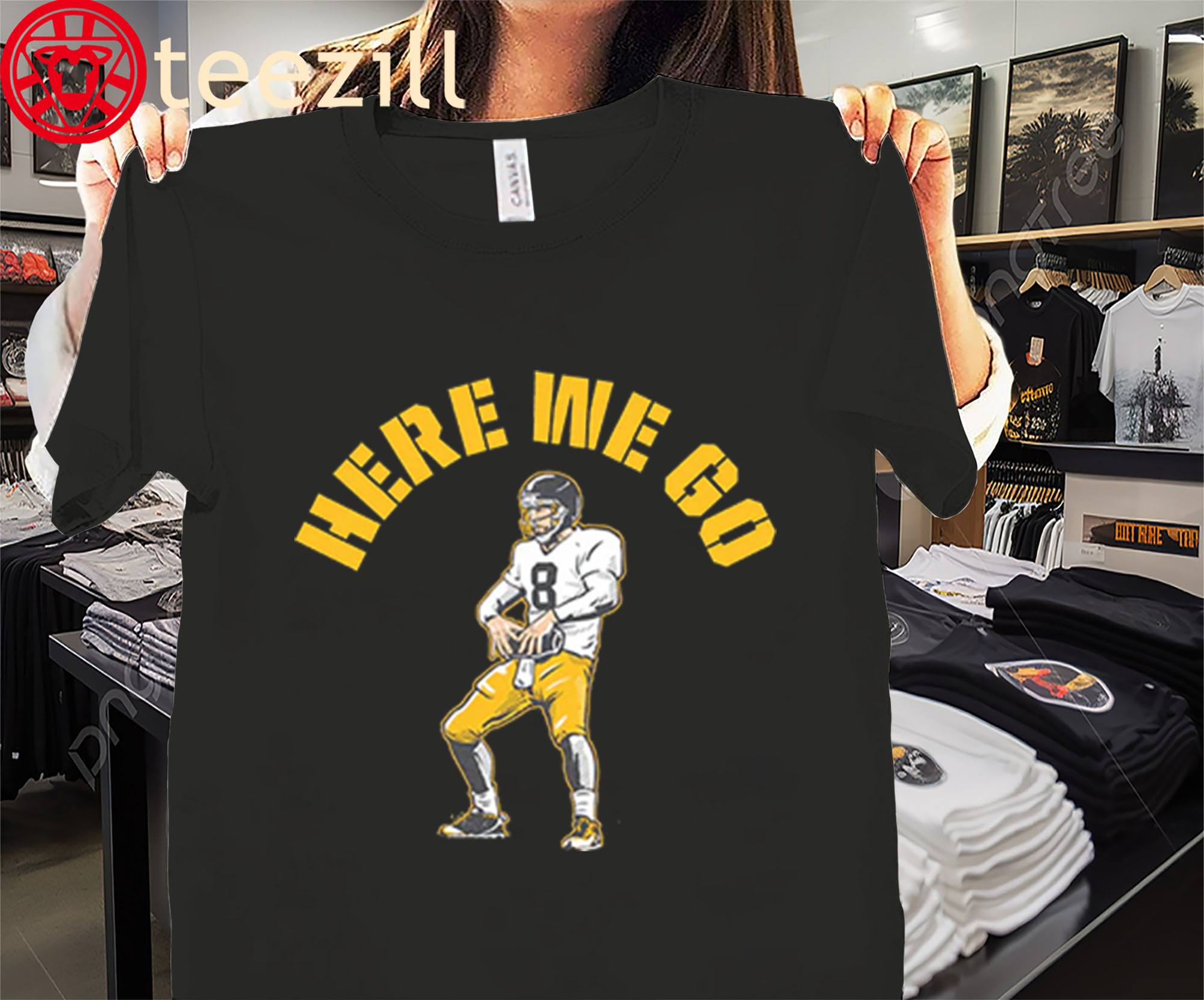 Whether it’s fantasy, future, or full-blown fever dream, the Aaron Rodgers “Here We Go” Shirt imagines what happens when one of the NFL’s biggest arms joins one of football’s loudest fanbases. Rodgers in black and gold? Stranger things have happened.