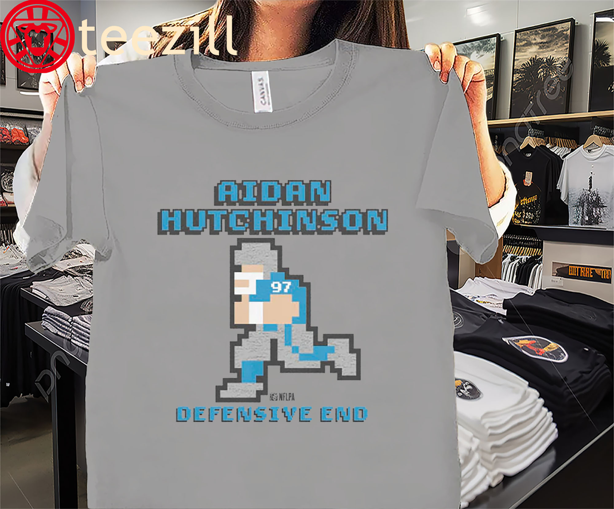Show your Detroit pride with the Aidan Hutchinson Style Retro Baller Shirt, a perfect mix of vintage gaming vibes and modern football energy. Featuring a bold, pixelated design, this tee celebrates Hutchinson’s relentless drive and leadership on the field — a true throwback look for a new era of Lions football.