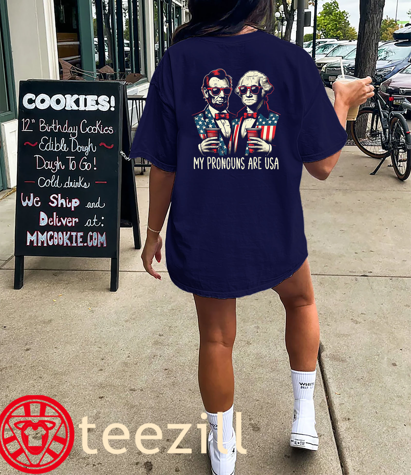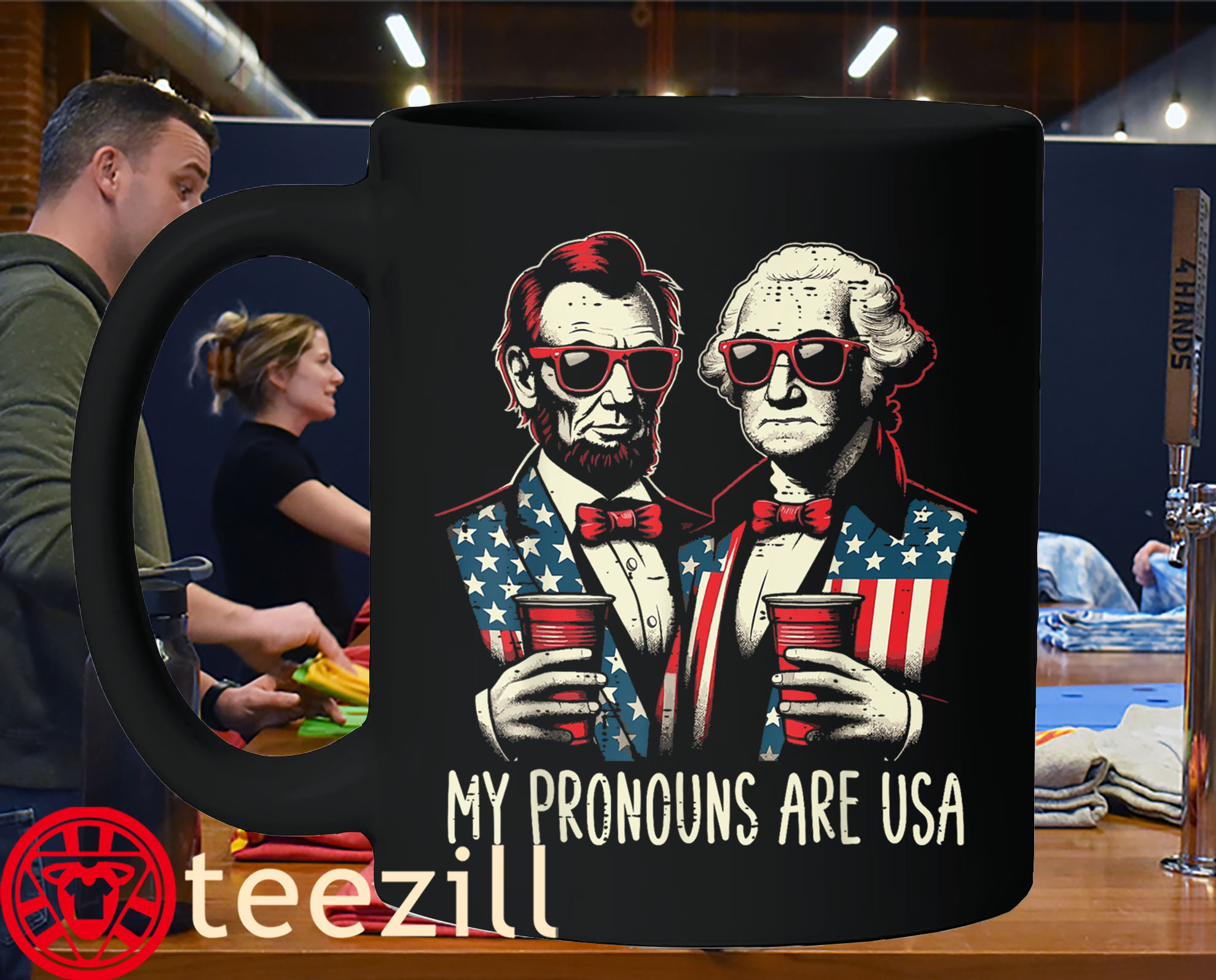 Because nothing says “America” like powdered wigs, sunglasses, and a cooler full of freedom. Red, white, and ridiculously patriotic.