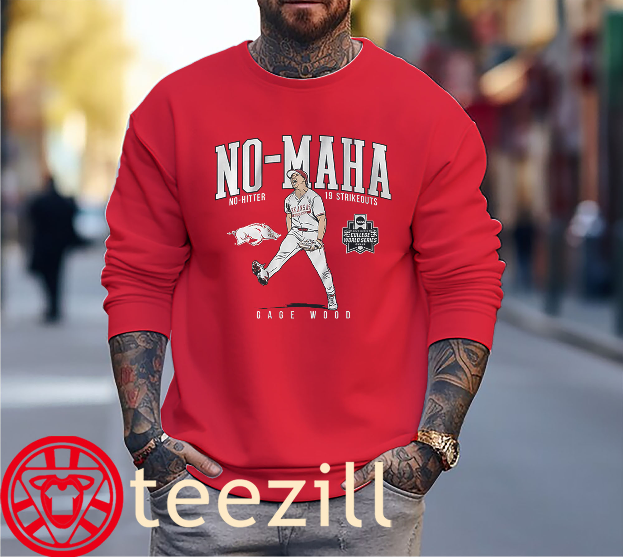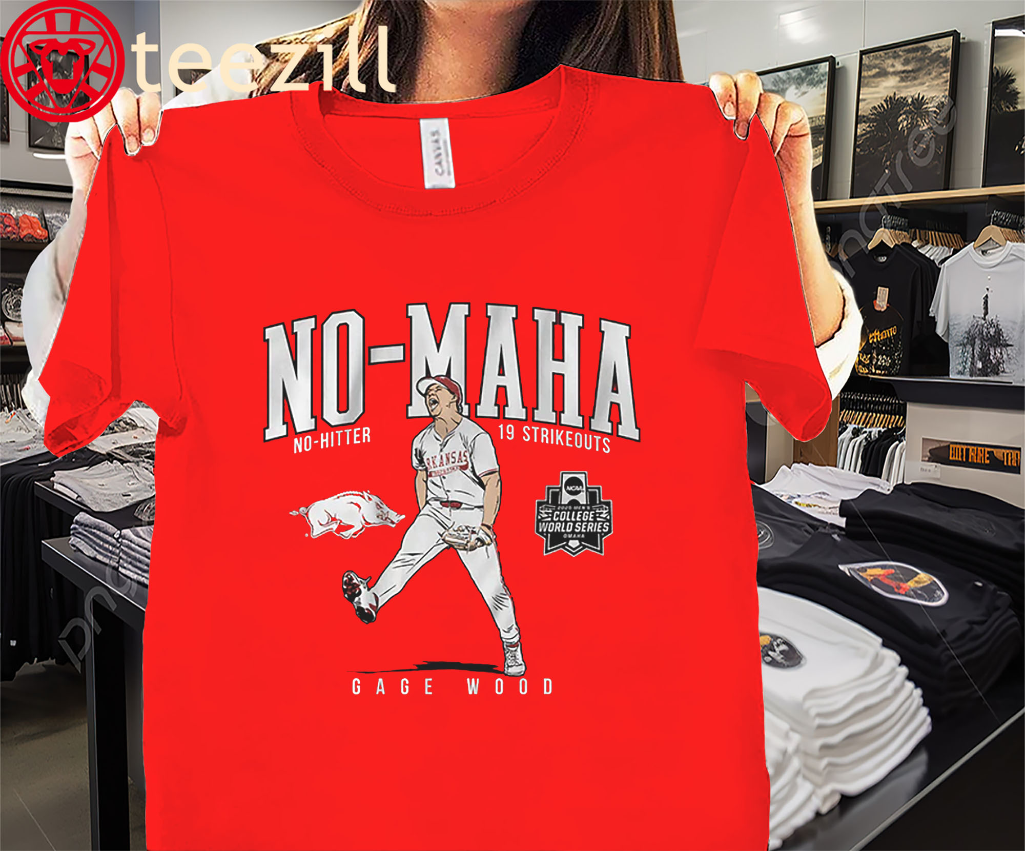 Arkansas Baseball No-Maha Gage Wood CWS No-Hitter Shirt