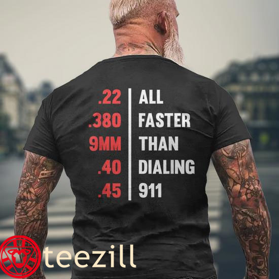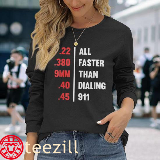 Bullets All Faster Than Dialing 911 .22 .380 9Mm .45 Tee Shirt