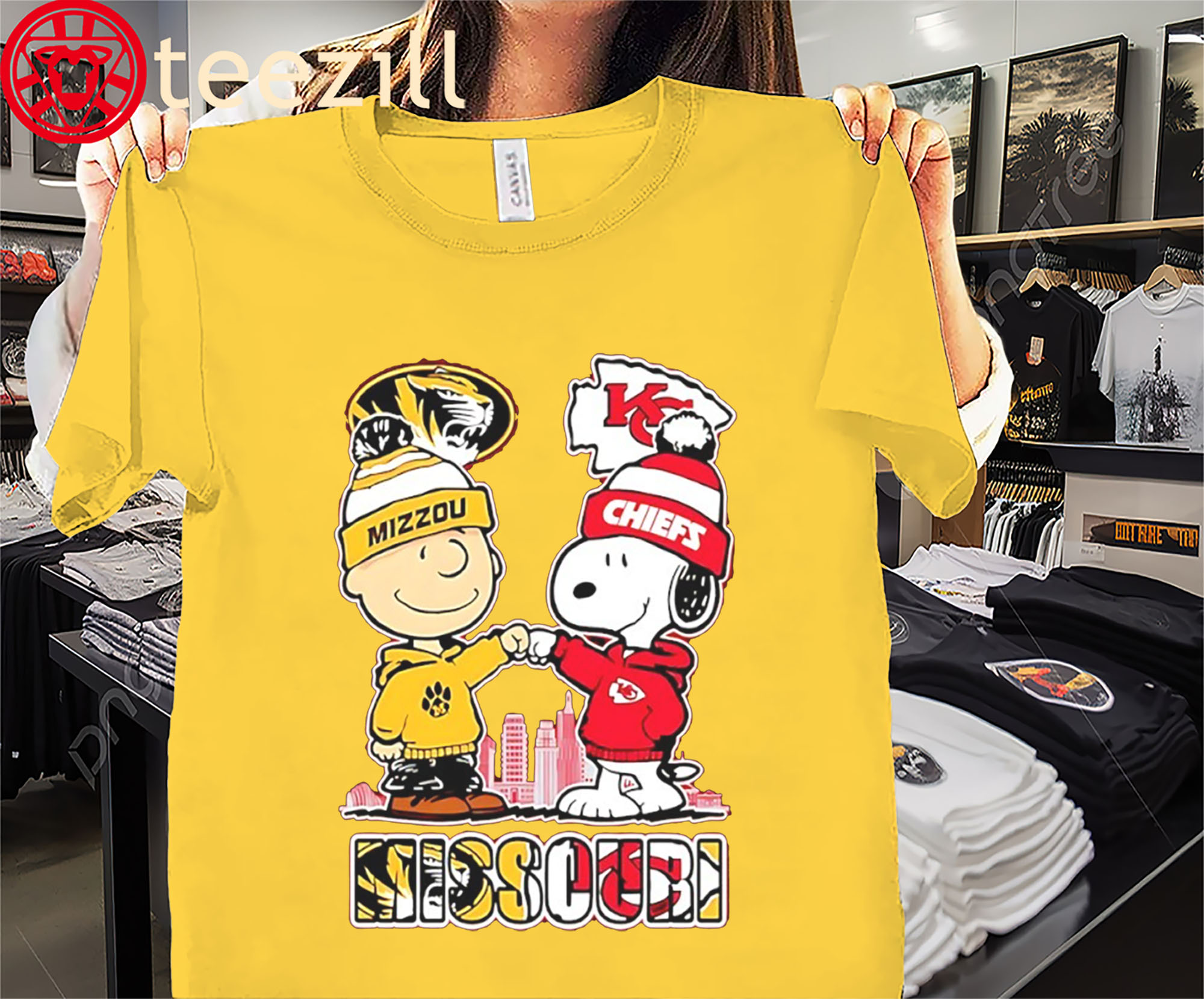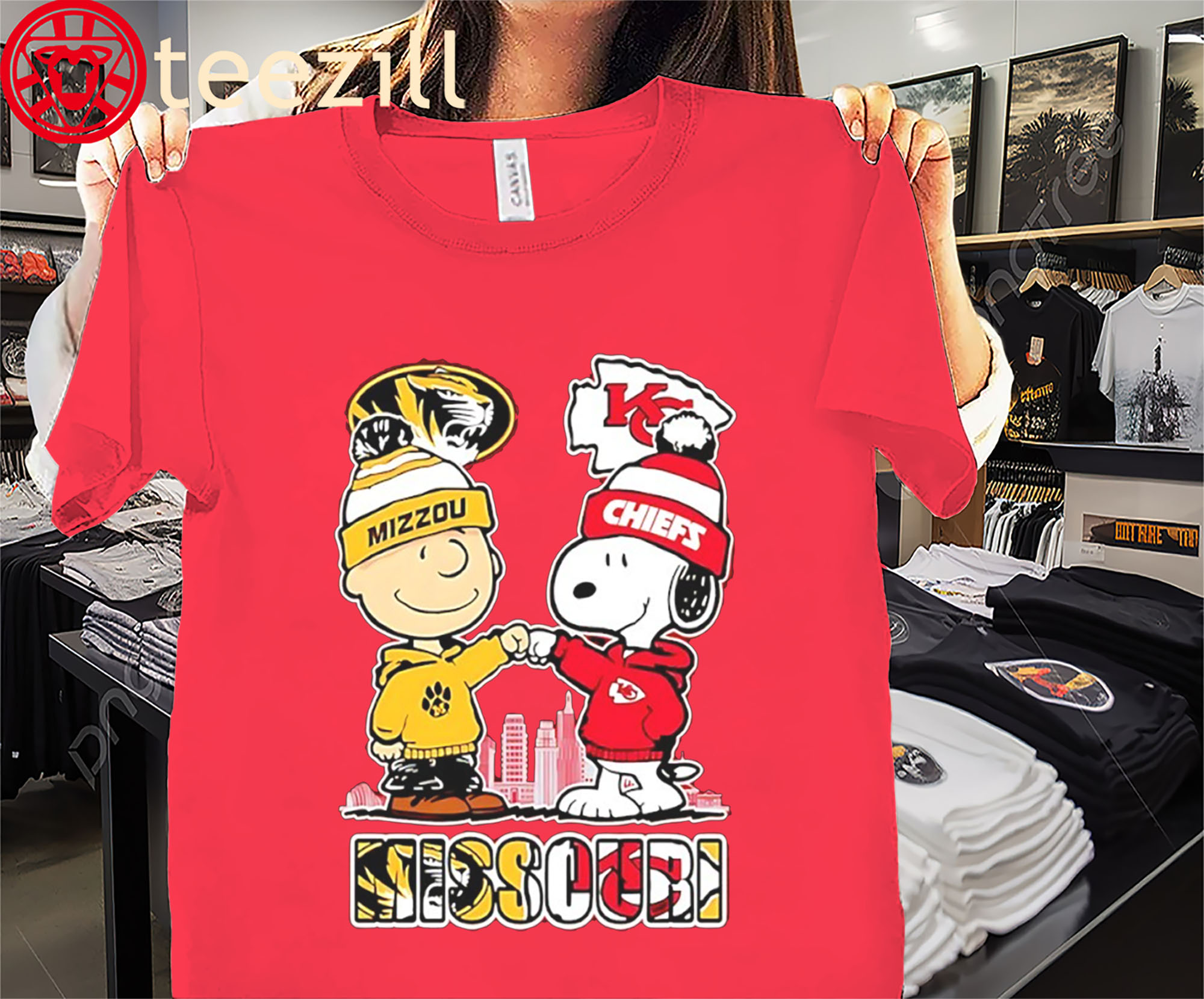 👕 Why This: Charlie Brown MO Tigers & Snoopy KC City Chiefs 75th Anniversary Shirt