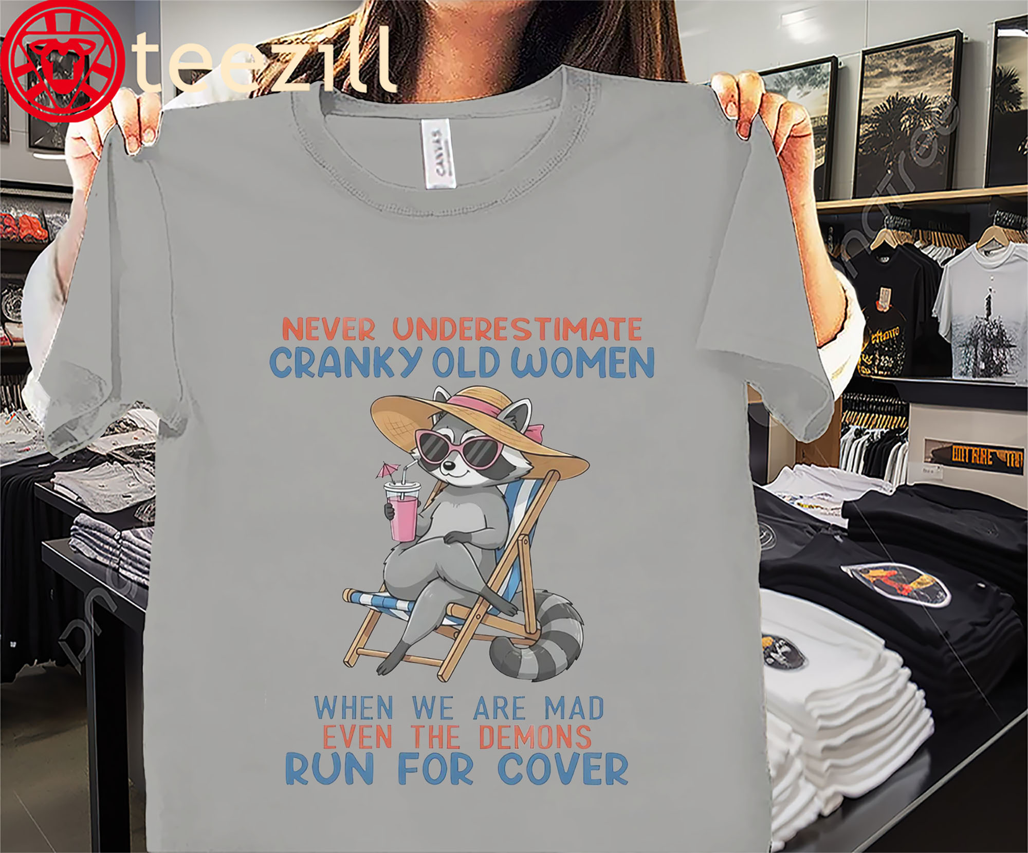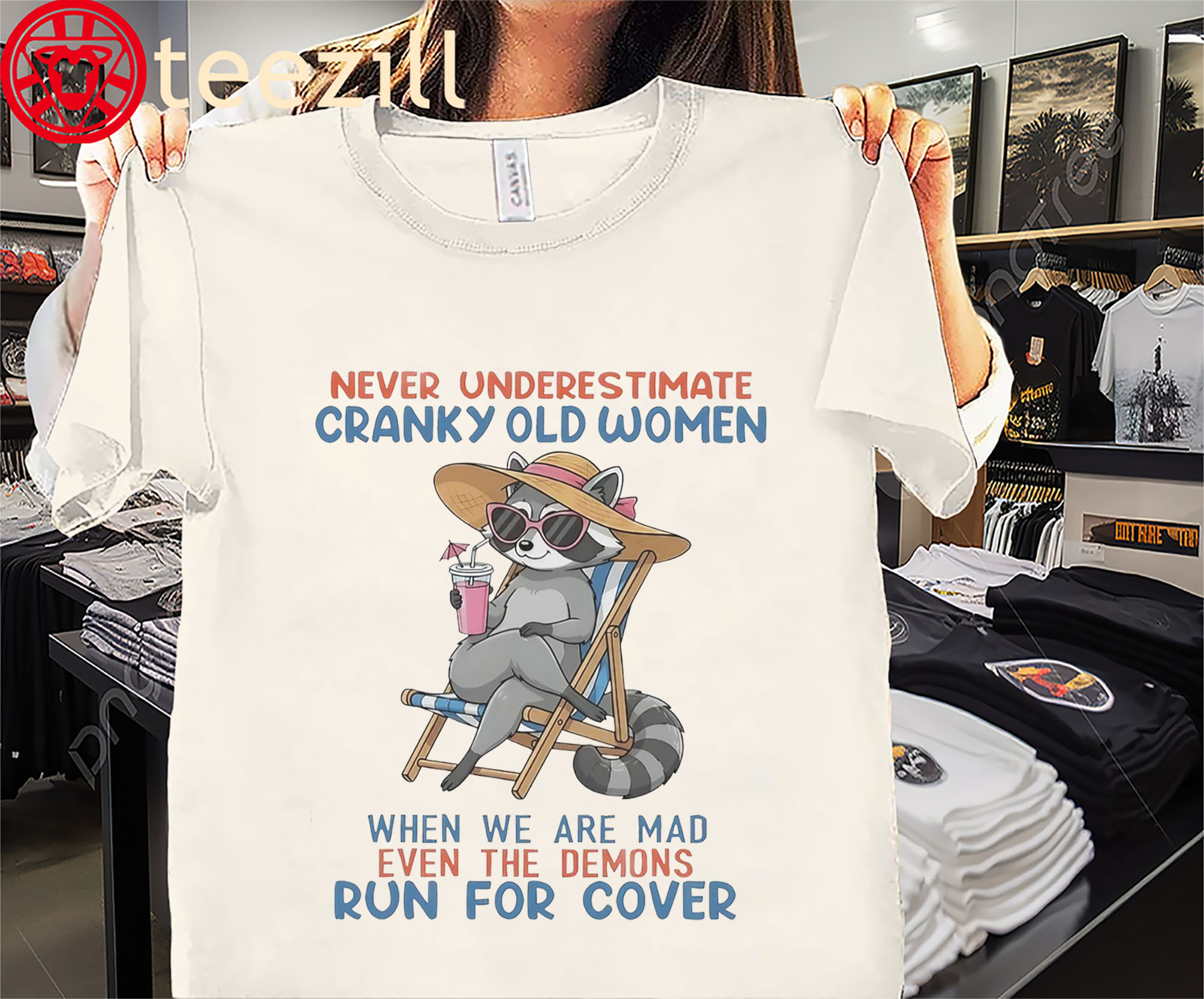 👕 Why This: Cute Raccoon Never Underestimate Cranky Old Women Tee Shirt
