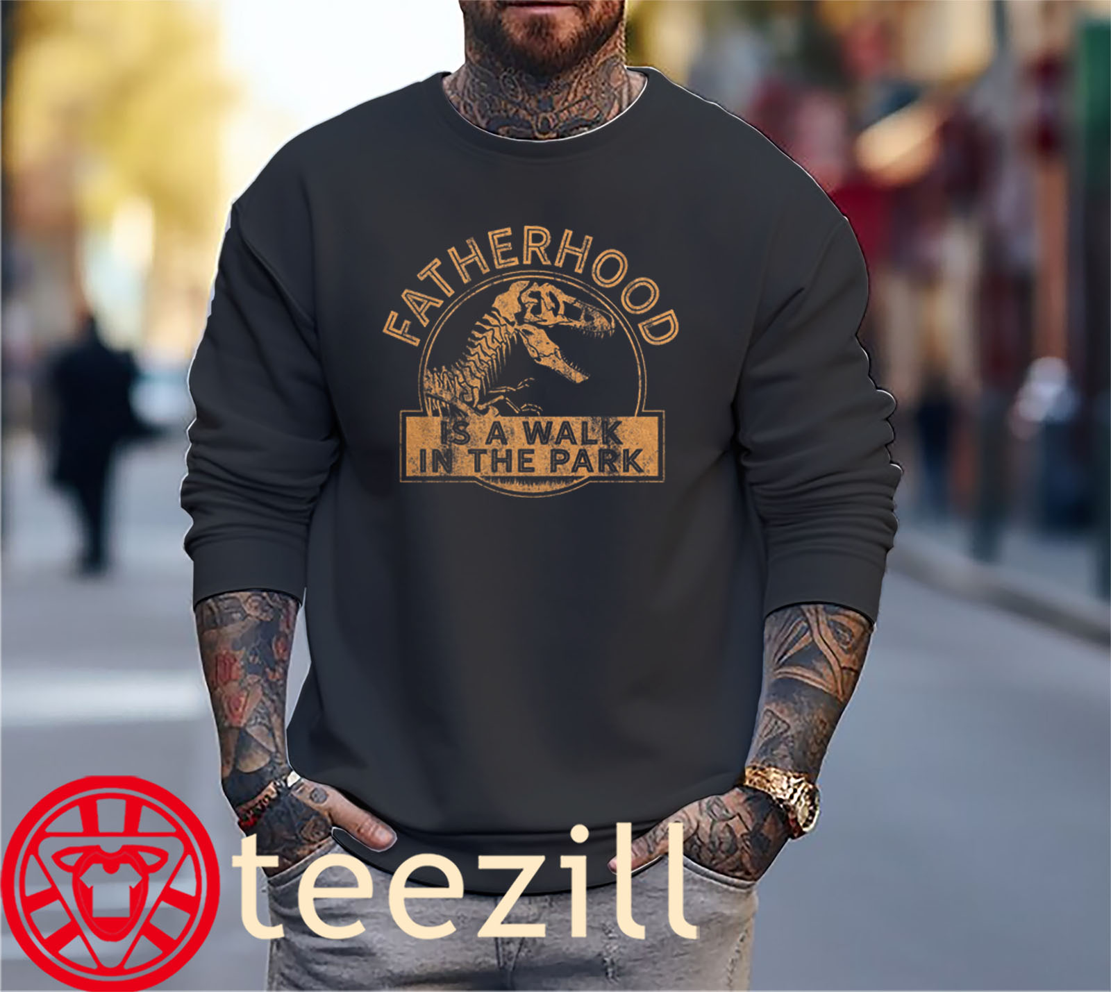 Fatherhood Like A Walk in the Park Shirt Funny Dad Dinosaur T-Shirt