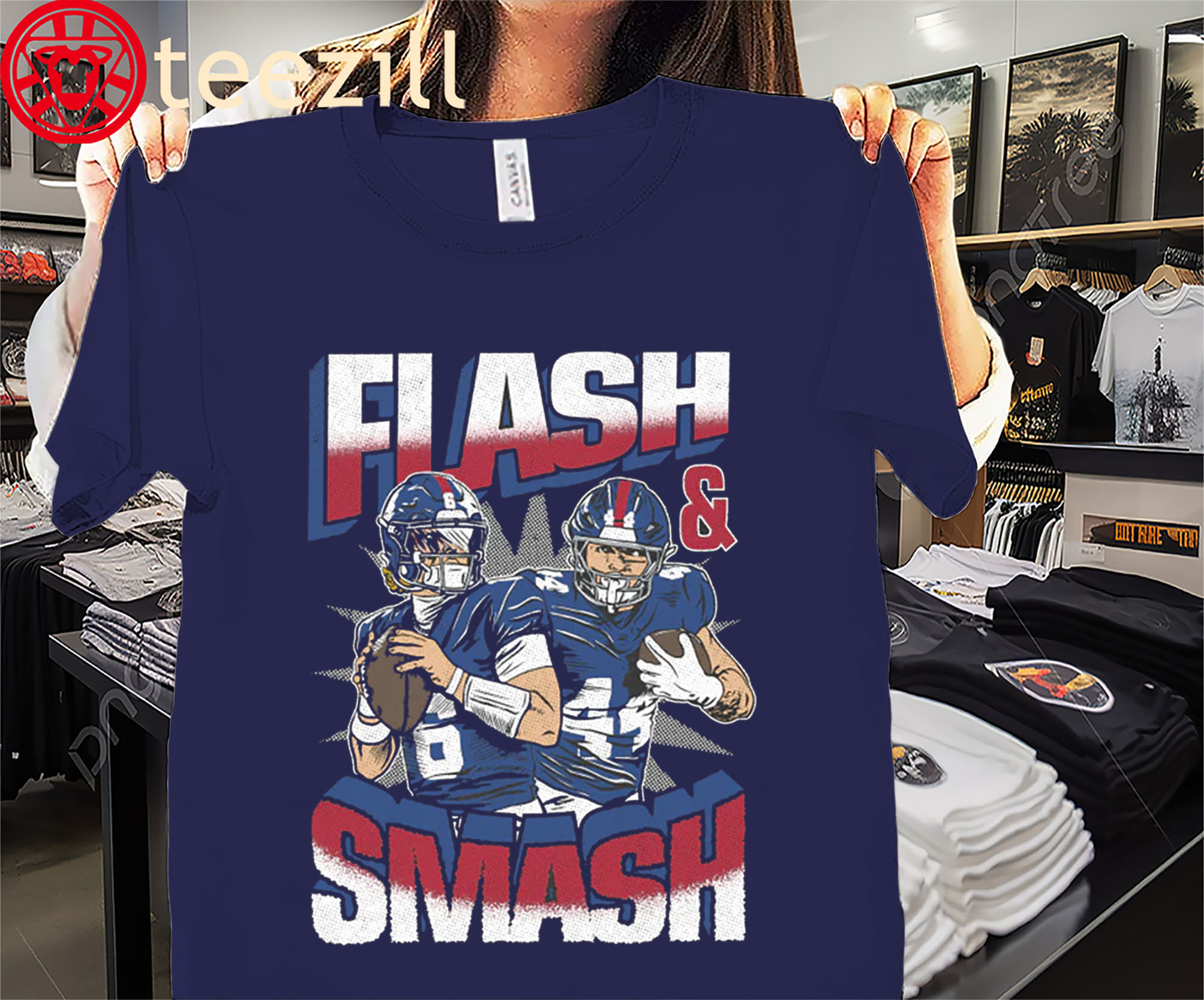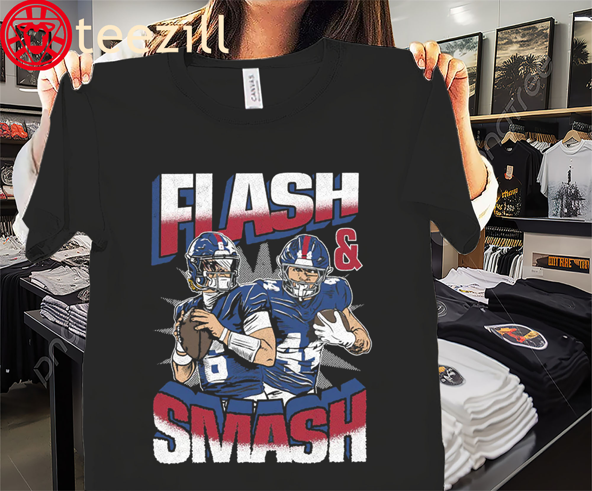 Flash and Smash Shirt Jaxson Dart & Cam Skattebo Tee New York Giants Football TShirt