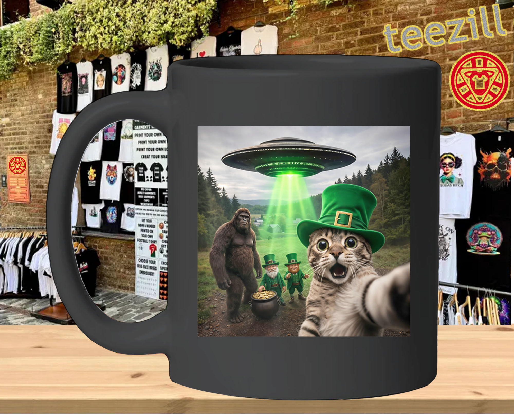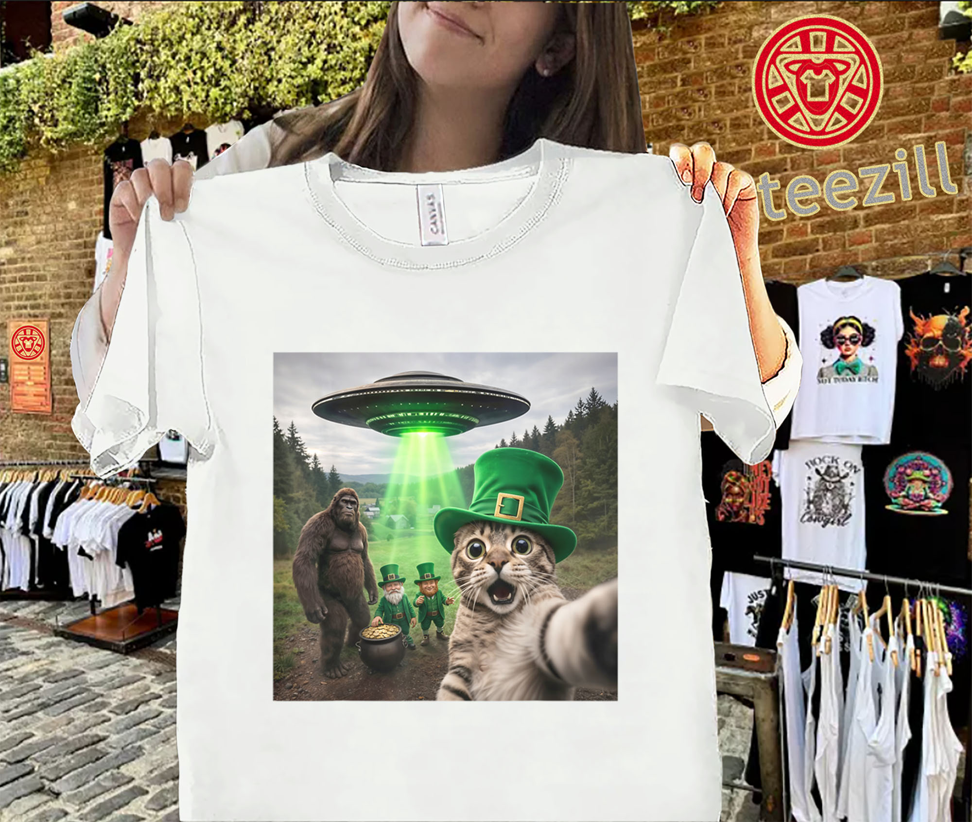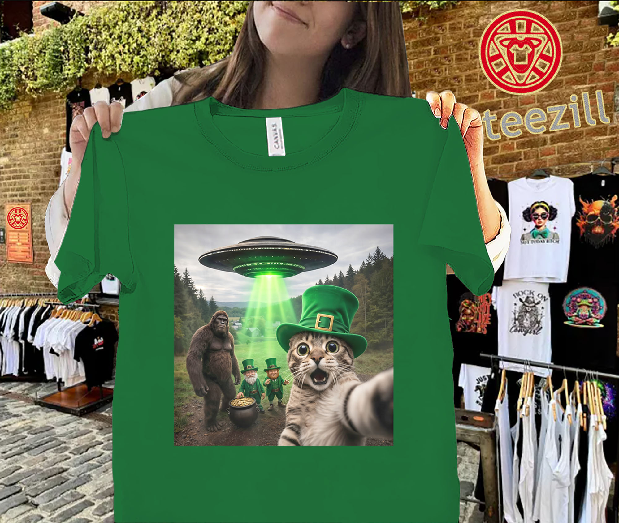 #StPatricksDay #FunnyCatShirt #CatSelfie #HolidayHumor #BigfootStyle #UFODesign #FunnyGraphicTee #StPattysDay #MemeShirt #FestiveStyle