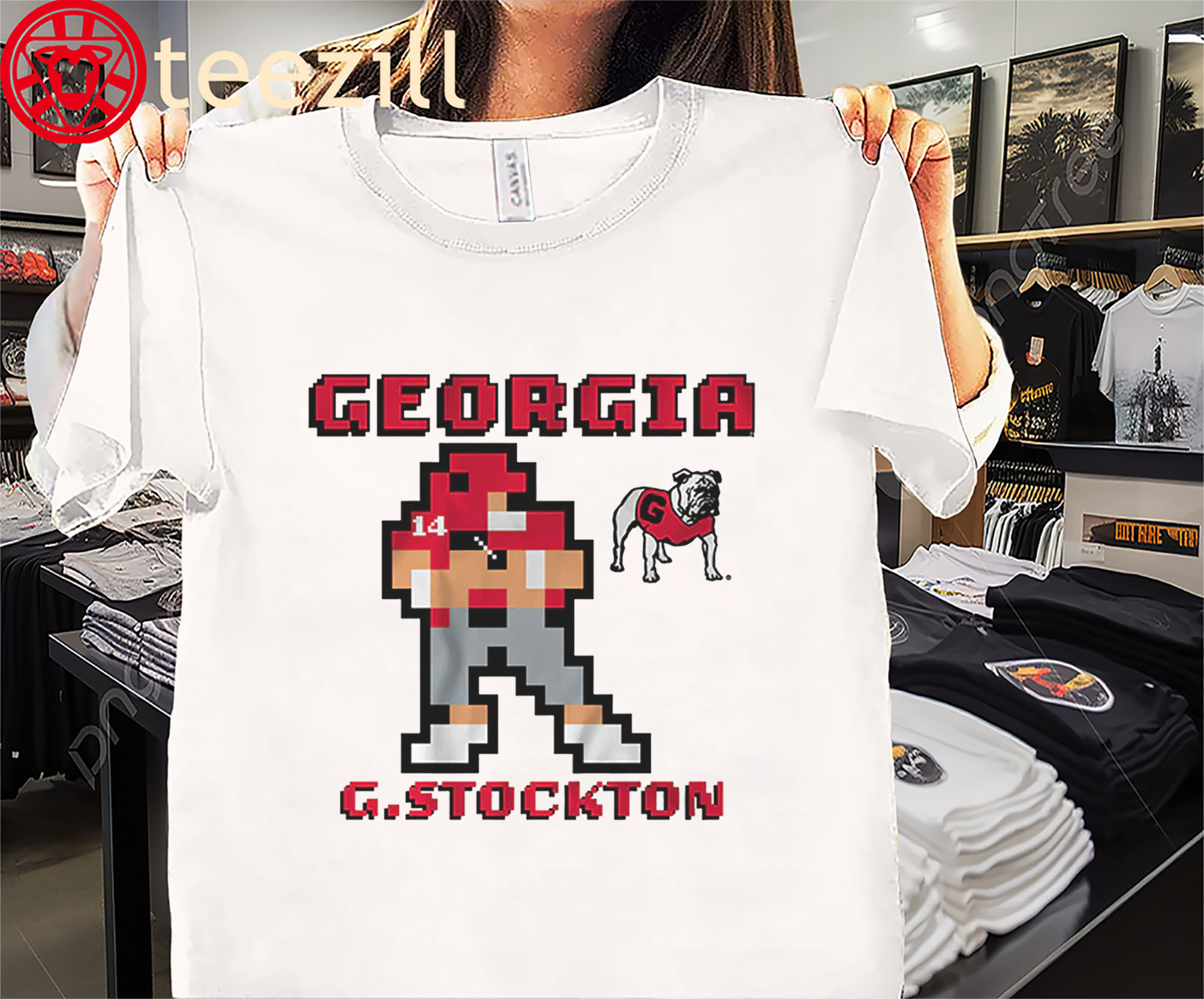 Rep the Dawgs with the Georgia Football: Gunner Stockton UGA Style Retro Baller Shirt. Featuring a pixelated, vintage-gamer design, this tee celebrates Gunner Stockton’s talent and the powerhouse tradition of Georgia football. Perfect for game days in Athens, tailgates, or everyday wear, this shirt lets every fan show off their UGA pride in true retro style.