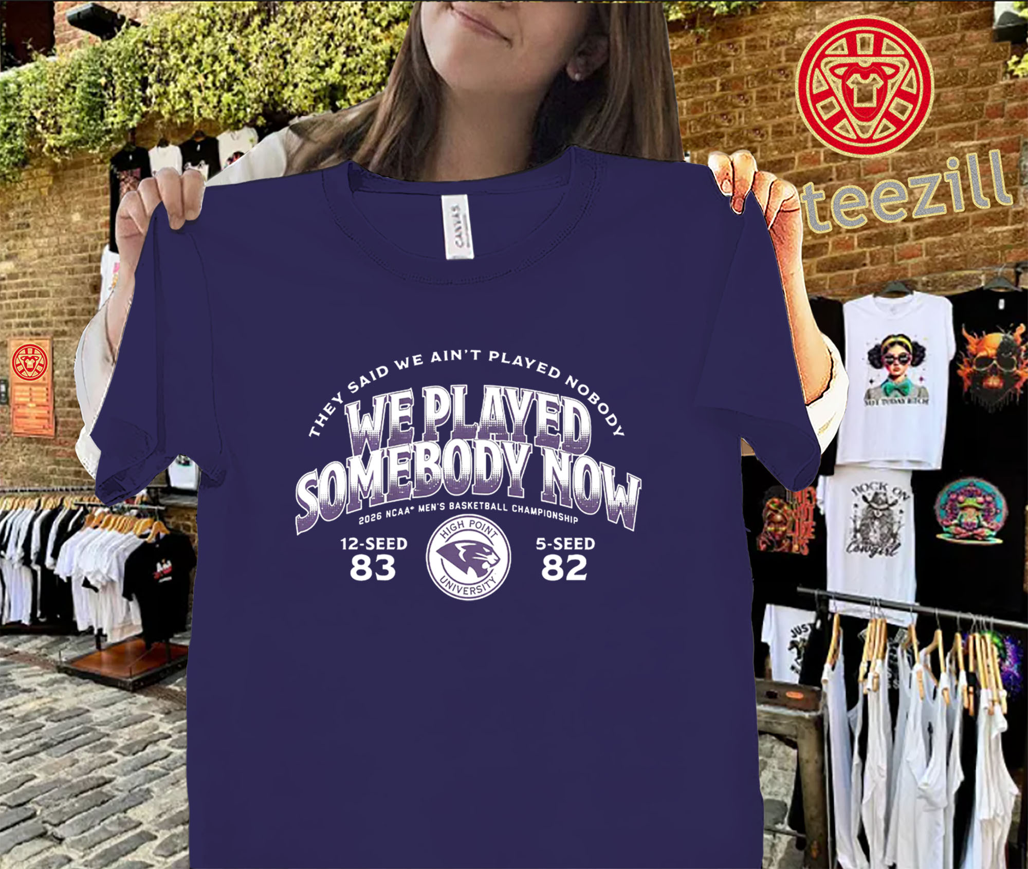 The High Point Panthers Shirt – We Played Somebody March Madness 2026 Tee captures one of the most unforgettable moments in tournament basketball. Celebrating High Point’s stunning victory and the bold statement heard around the game, this design is all about confidence, pride, and proving a point.