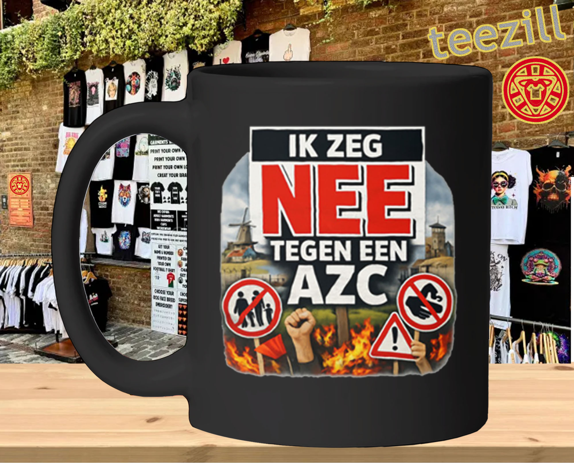 The Ik Zeg Nee Tegen AZC Shirt reflects a phrase used in public discussions and demonstrations in parts of the Netherlands. The Dutch phrase translates to “I say no to AZC,” referring to opposition to the development of an Asielzoekerscentrum (asylum seeker center).