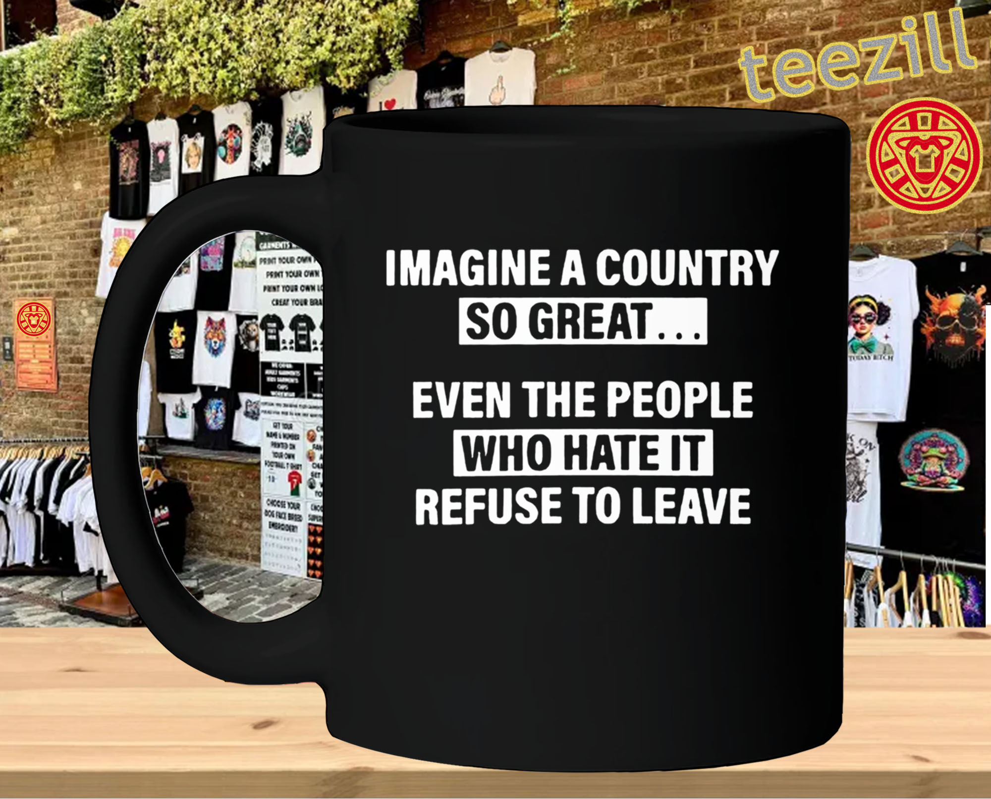 The Imagine a country so great even the people who hate it refuse to leave shirt gets reactions without trying too hard.