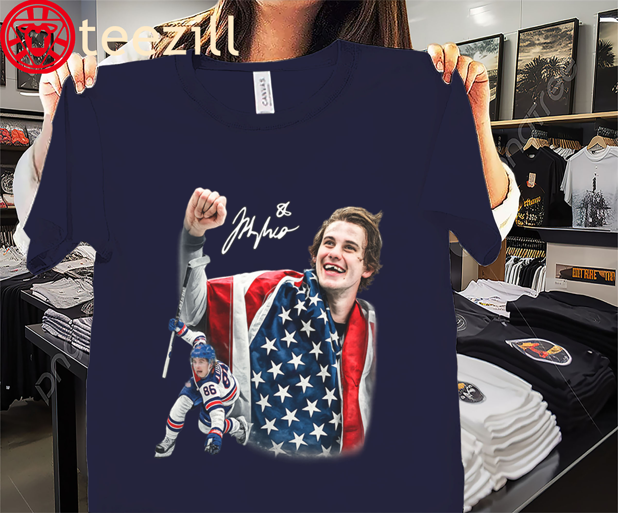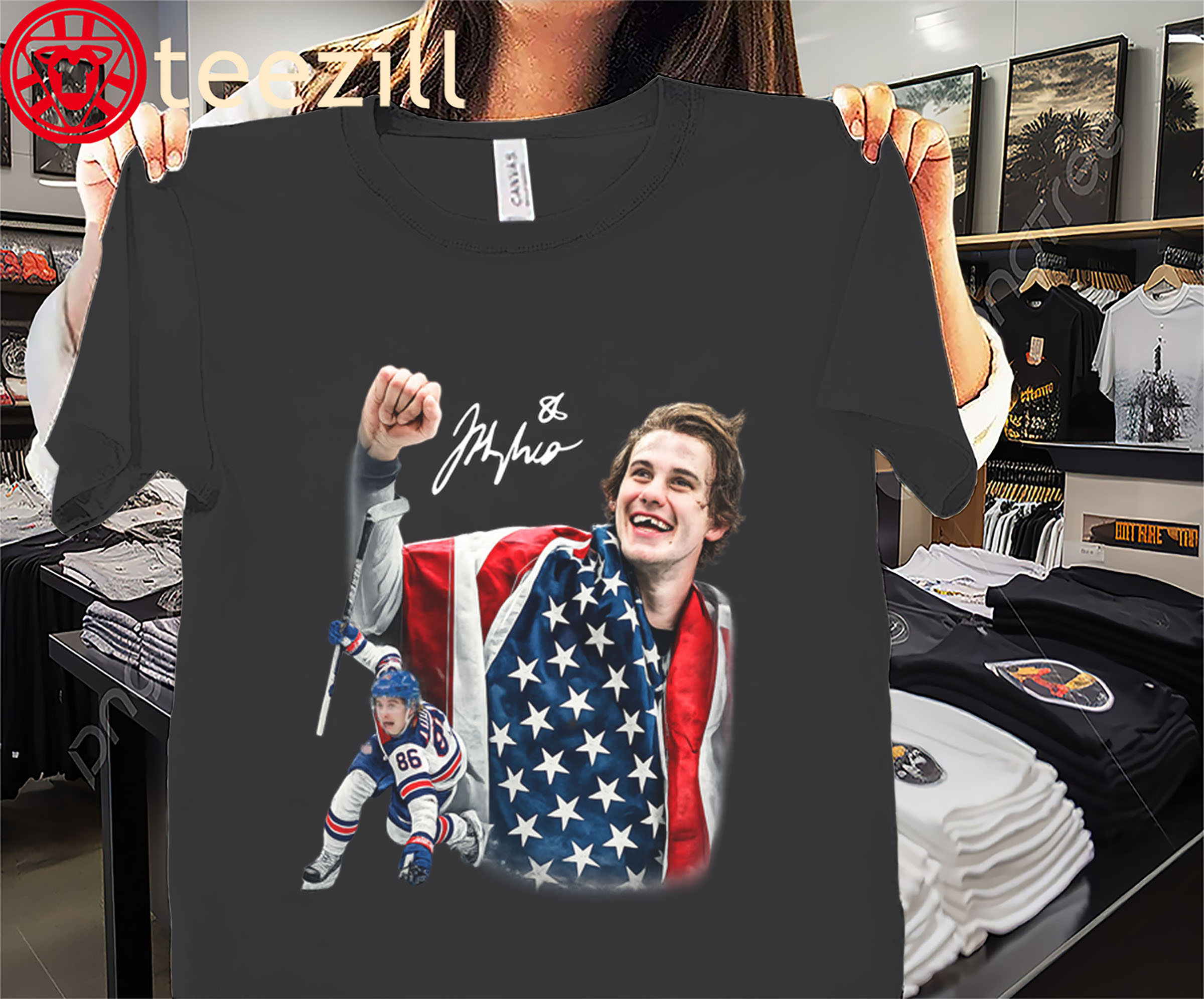 Jack Hughes Signature Hockey Shirt – USA Gold Hockey Champion Tee