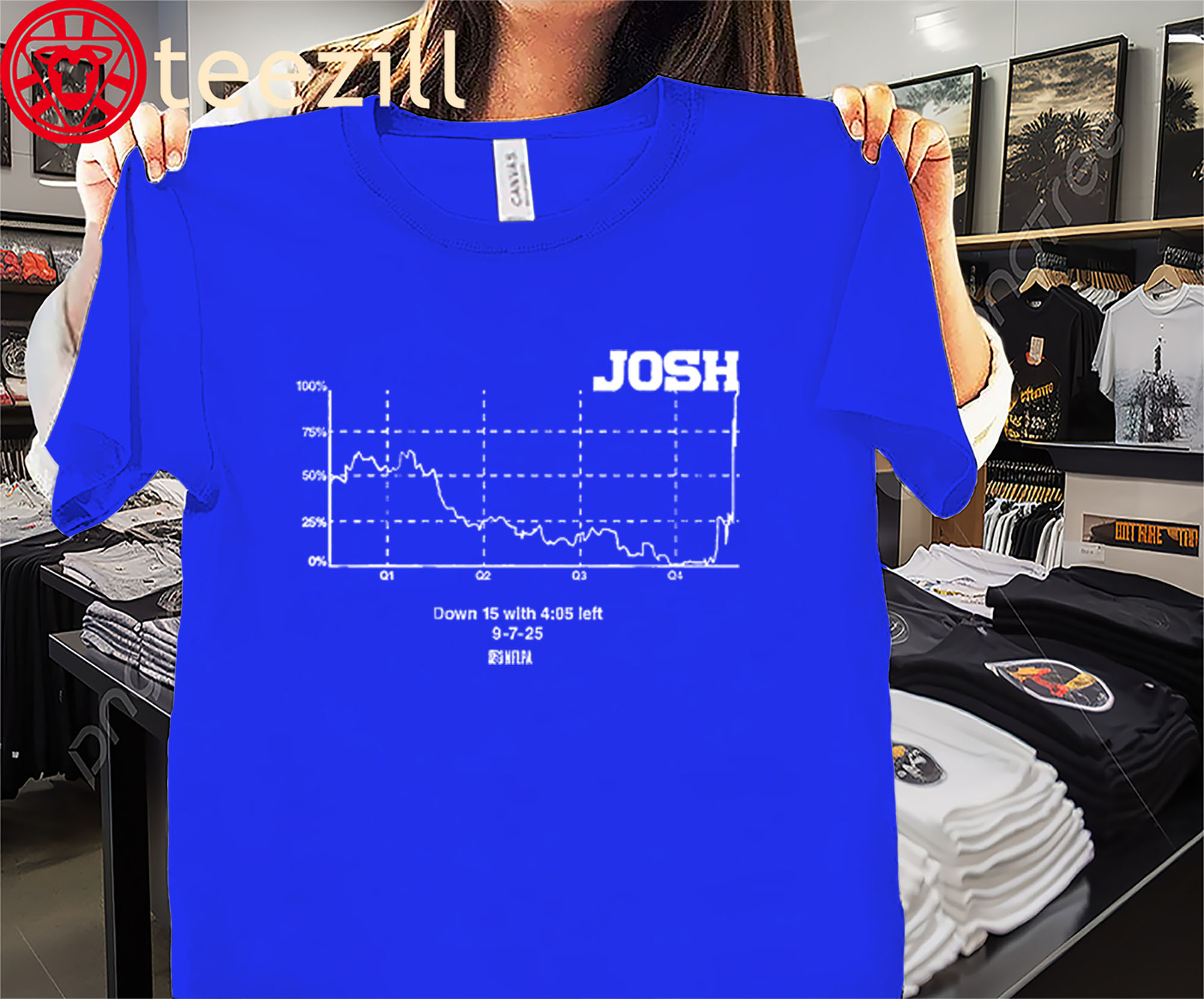 Celebrate every comeback and every clutch moment with the Josh Allen “Win Probability Chart” shirt! A nod to Buffalo’s fearless quarterback and the rollercoaster ride he delivers on Sundays, this tee is perfect for die-hard Bills fans. Comfortable, bold, and built for game day, it’s the ultimate way to show your Buffalo pride and ride the highs (and wild swings) with Josh Allen.