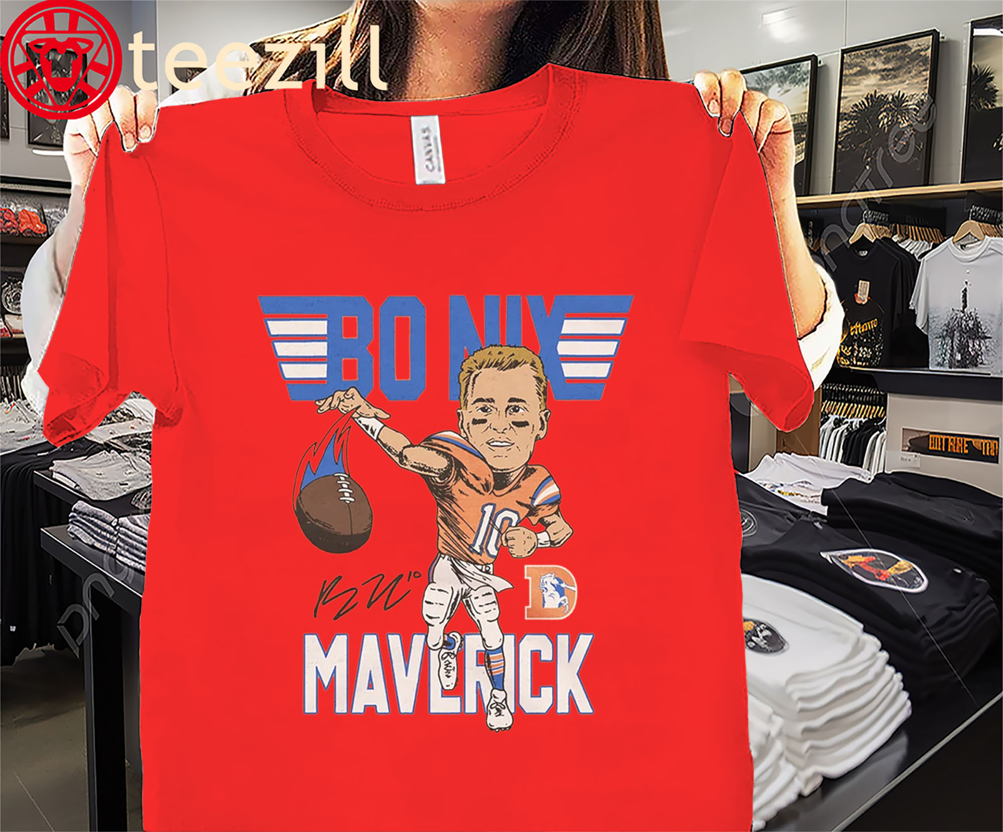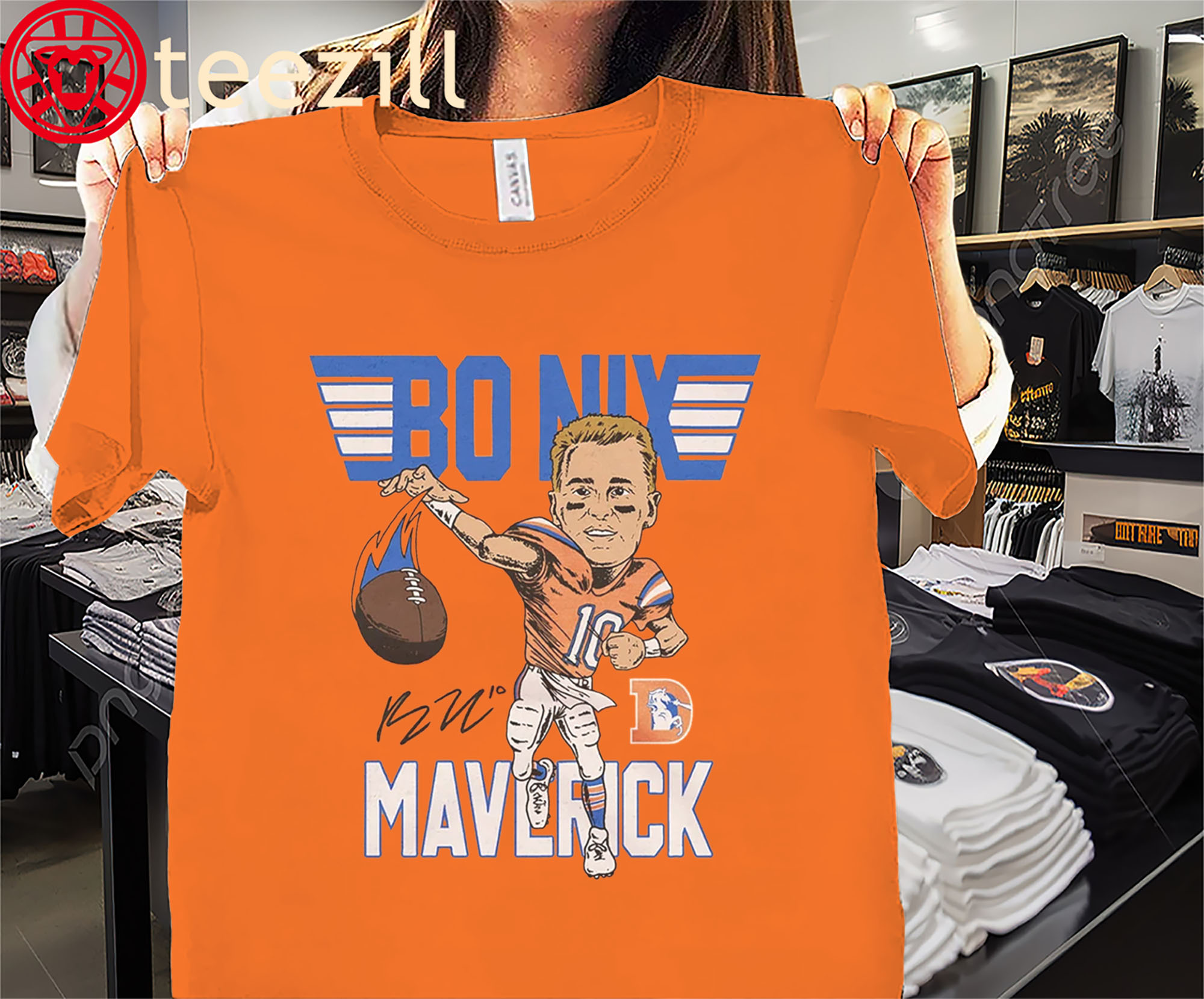 👕 Why This: Legend Bo Nix Maverick Of Denver Broncos Signature Shirt