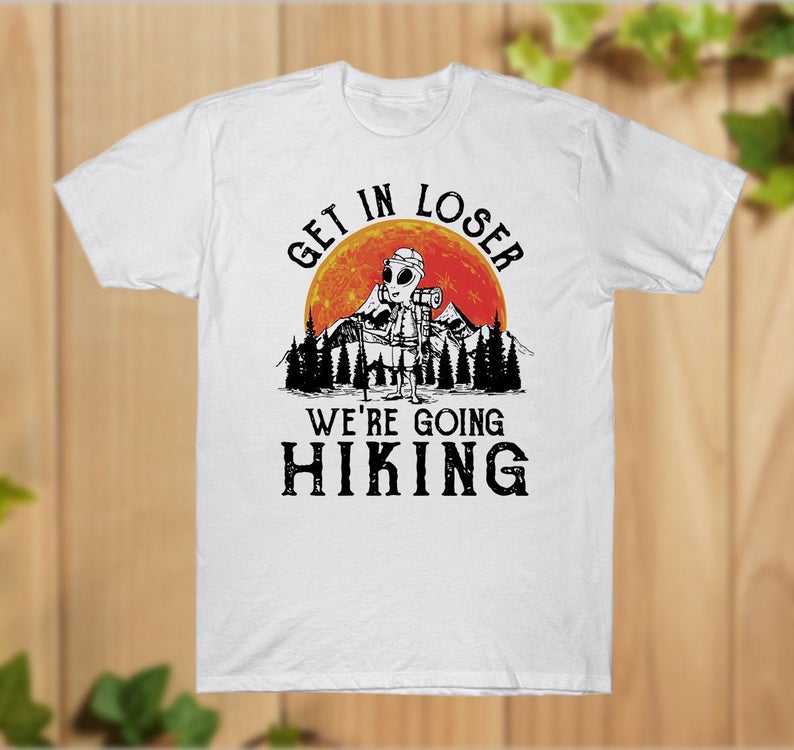 Love Camping Shirt, Get In Loser We’re Going Hiking Tees, Alien Adventure Lovers Van Car Unisex Vintage Cotton T-Shirt
