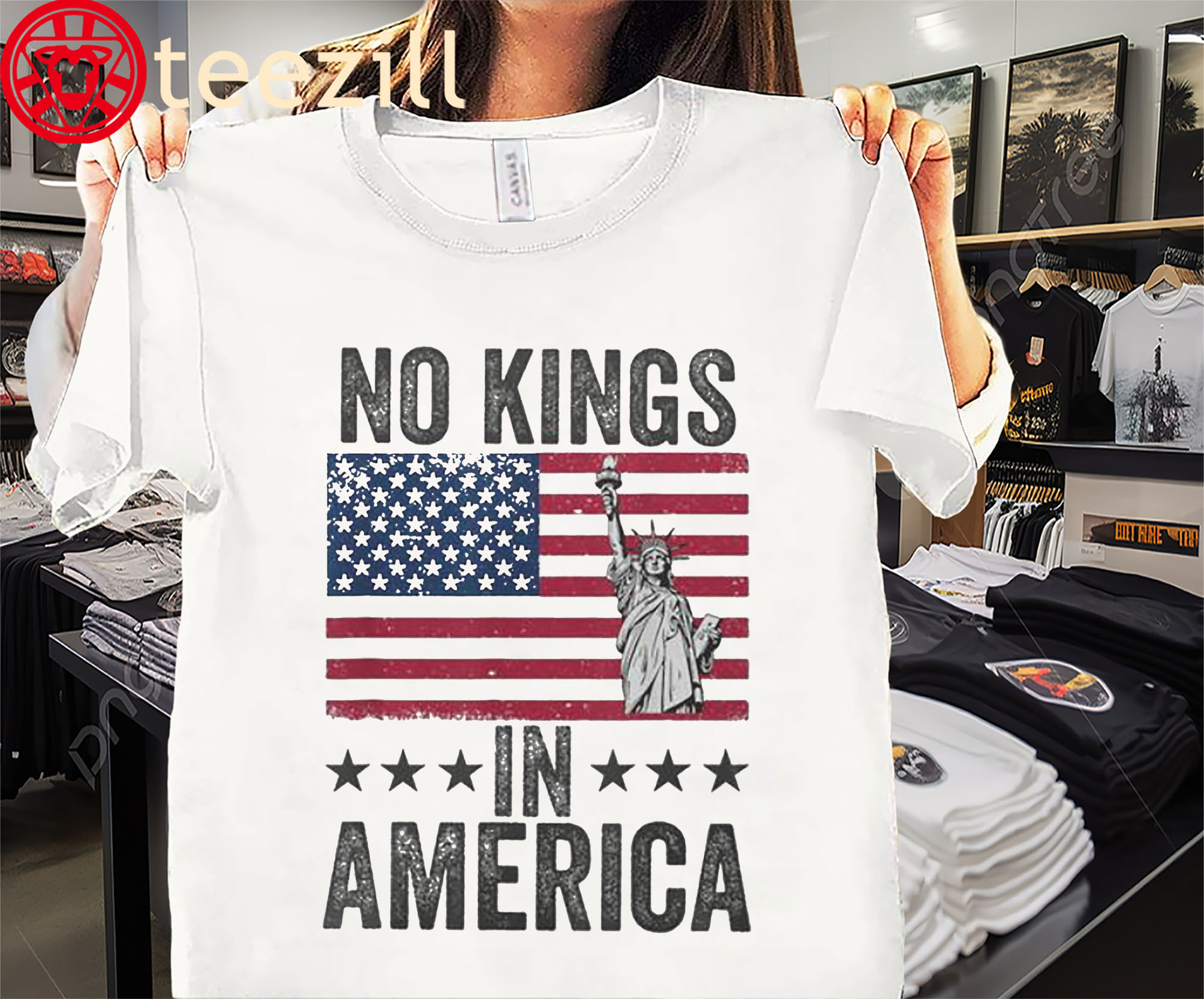 Whether you’re marching in the streets, voting at the polls, or just challenging authoritarian nonsense at the dinner table, this shirt declares what the Founders knew: we don’t do kings here.