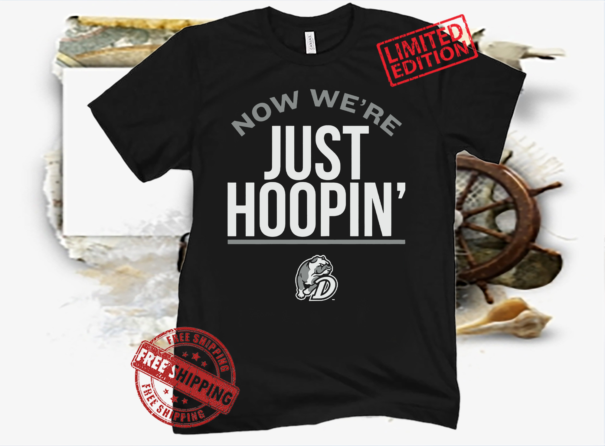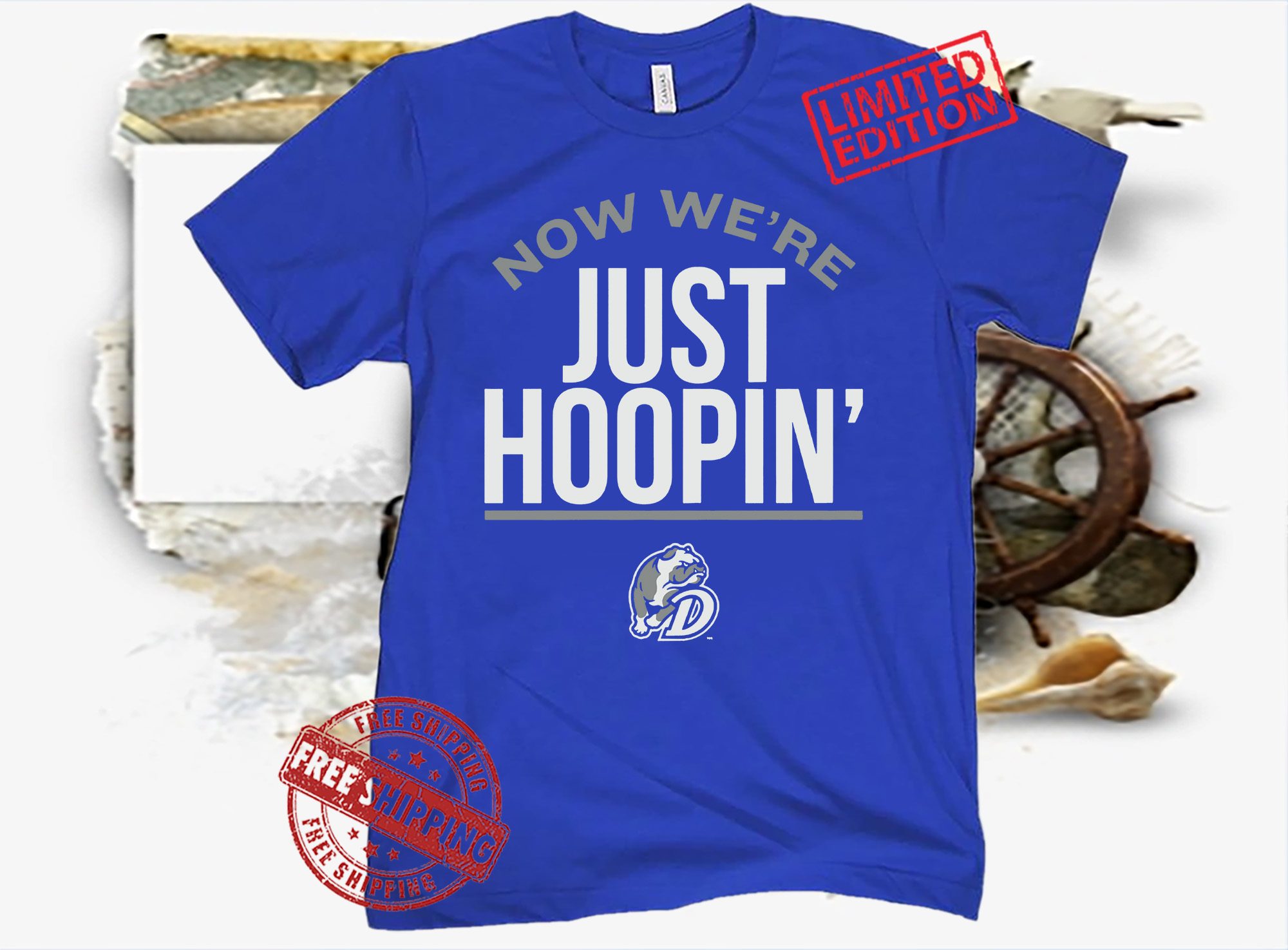 Now We’re Just Hoopin’ TShirt Drake Basketball Licensed- Drake Head Coach Darian DeVries.