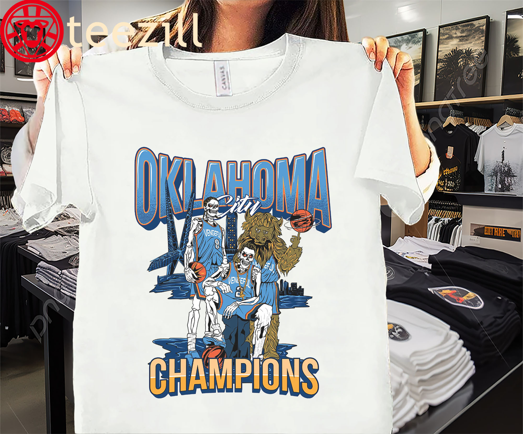 👕 Why This: Oklahoma City Thunder Champions Shirt OKC Thunders – Skeleton T-Shirt