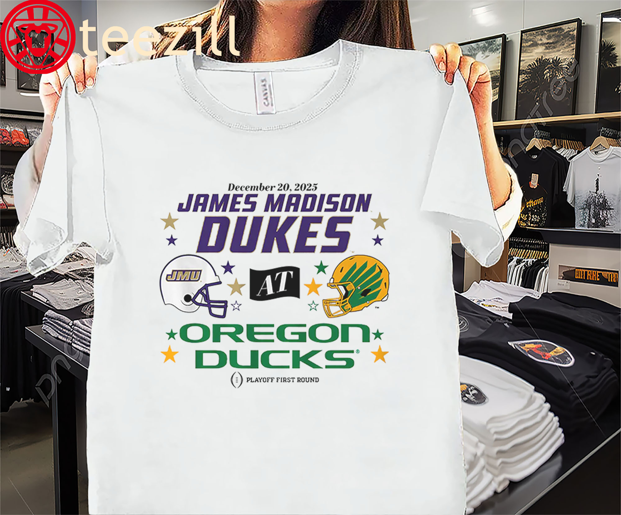 Oregon Ducks & JMU Dukes 2025 CFP 1st Round Matchup Shirt College Football Tee