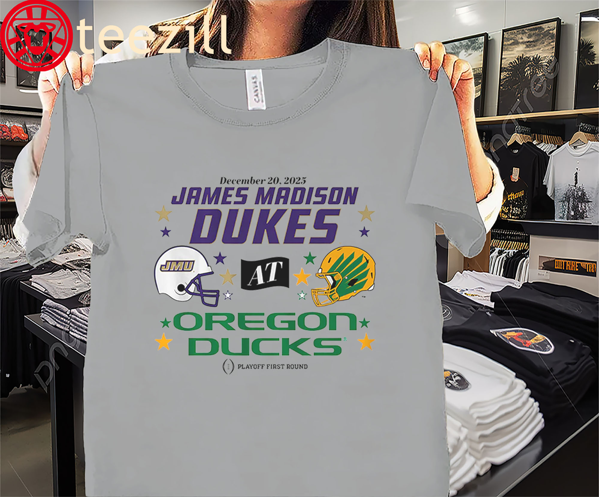 Be the first to review “Oregon Ducks & JMU Dukes 2025 CFP 1st Round Matchup Shirt College Football Tee” Cancel reply