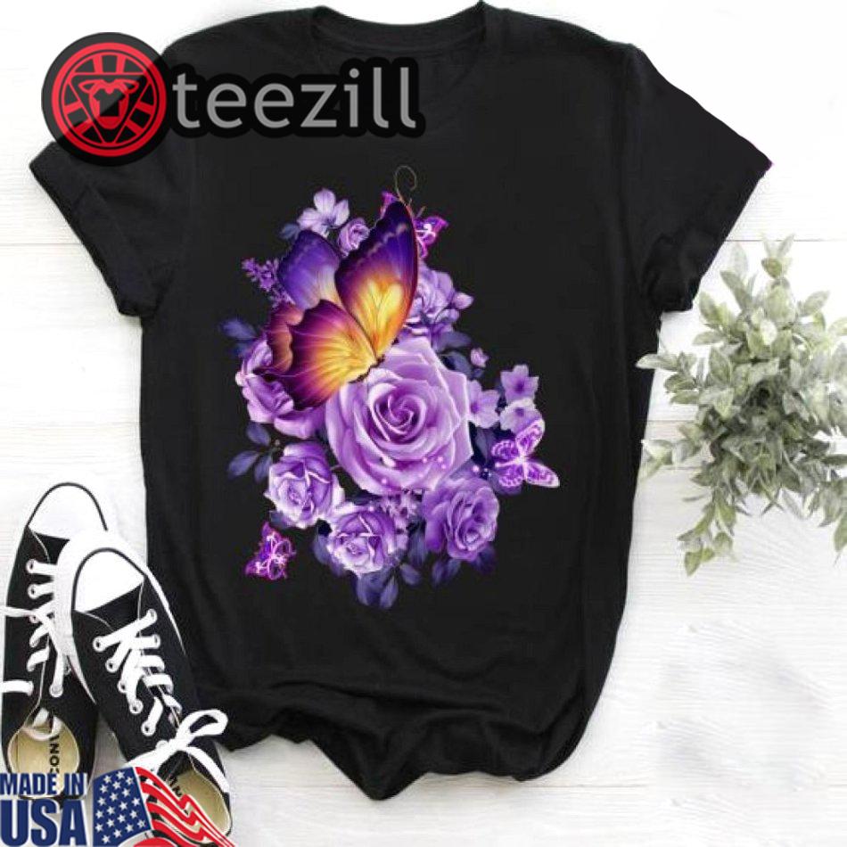 Pancreatic Cancer Awareness Butterfly Purple Rose Tshirts