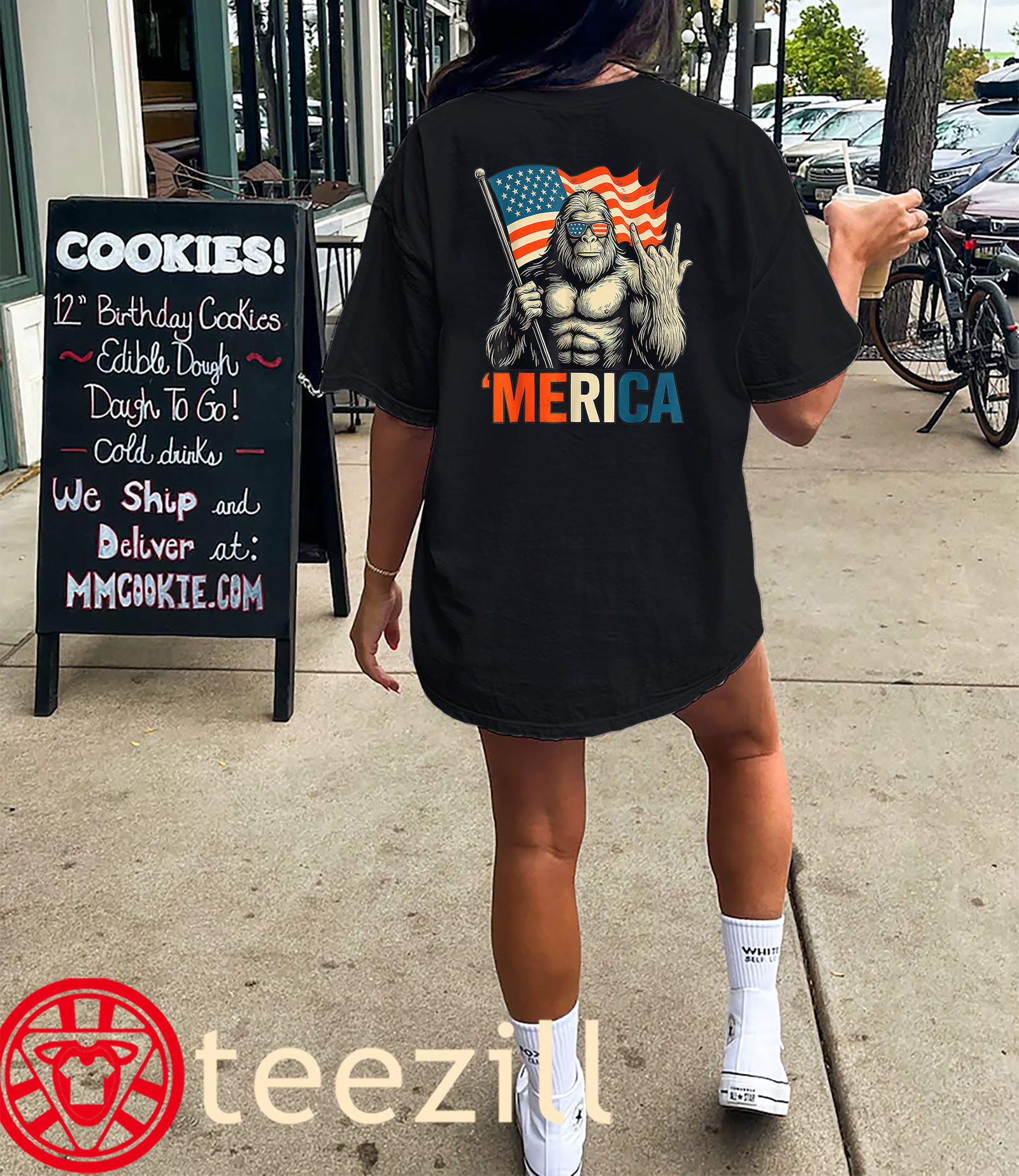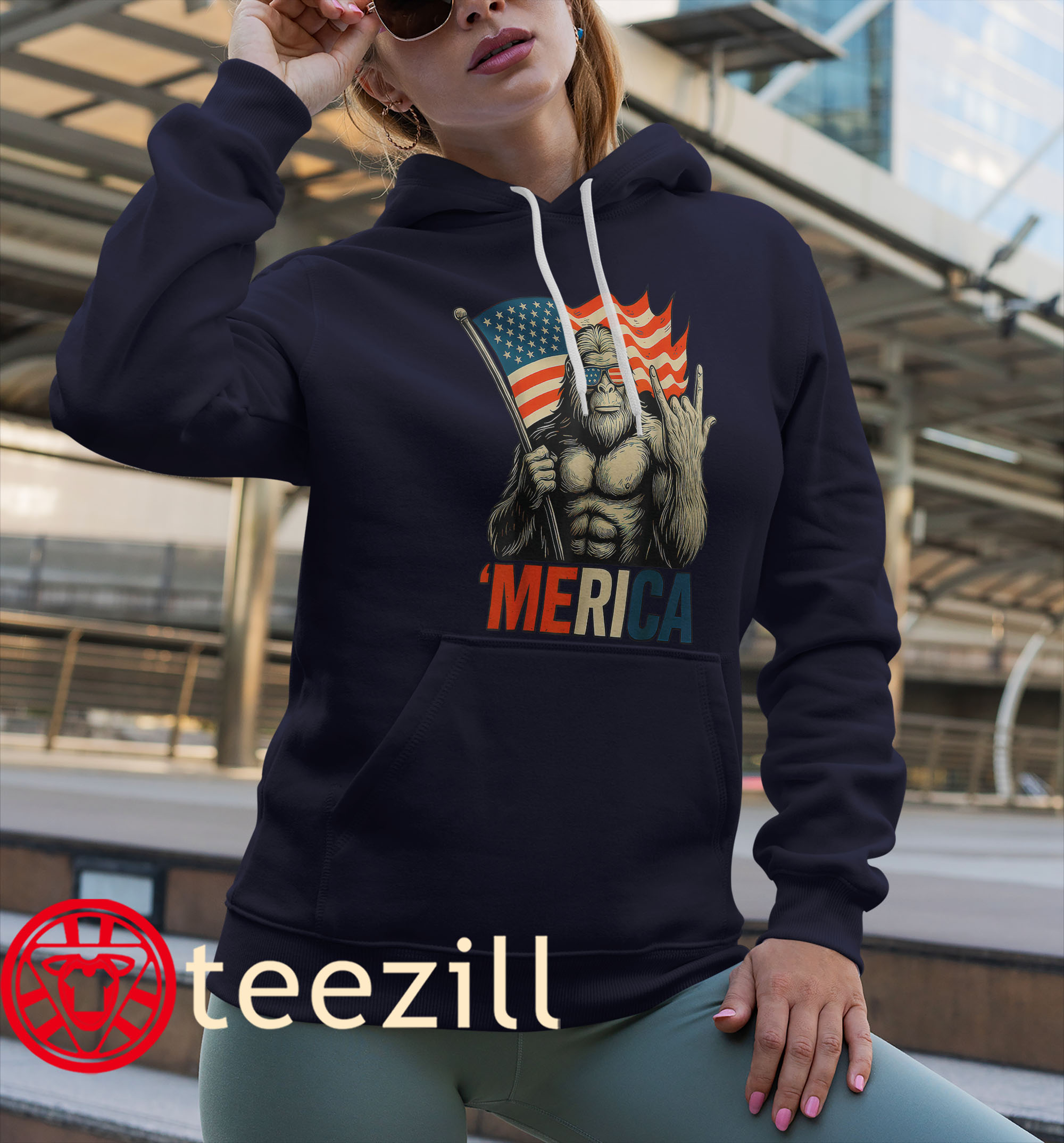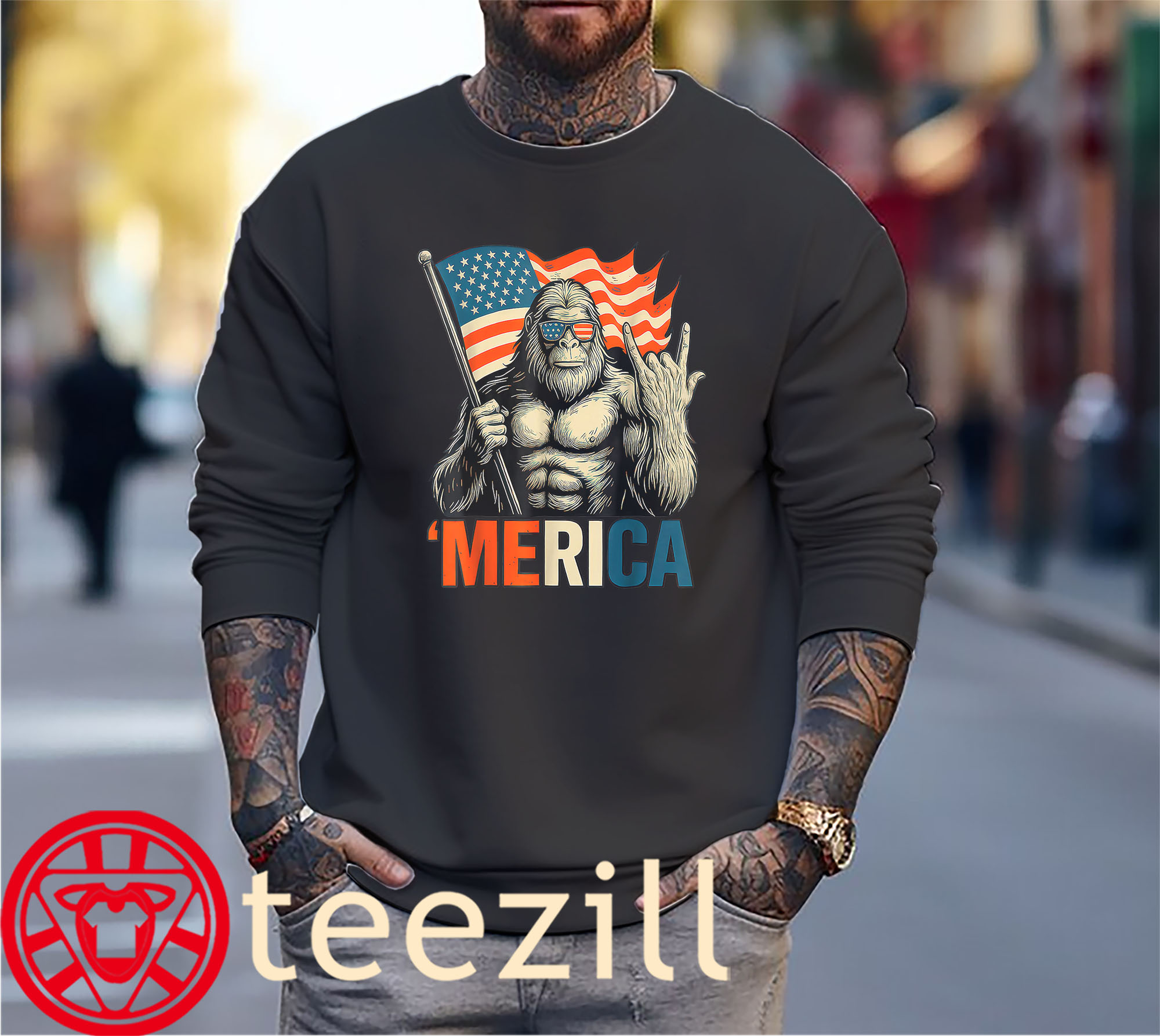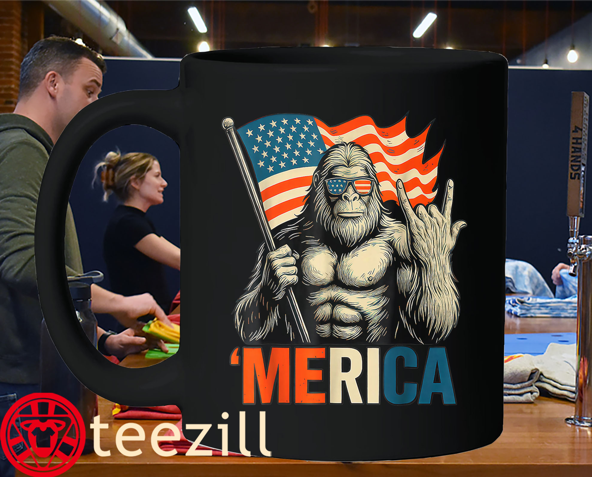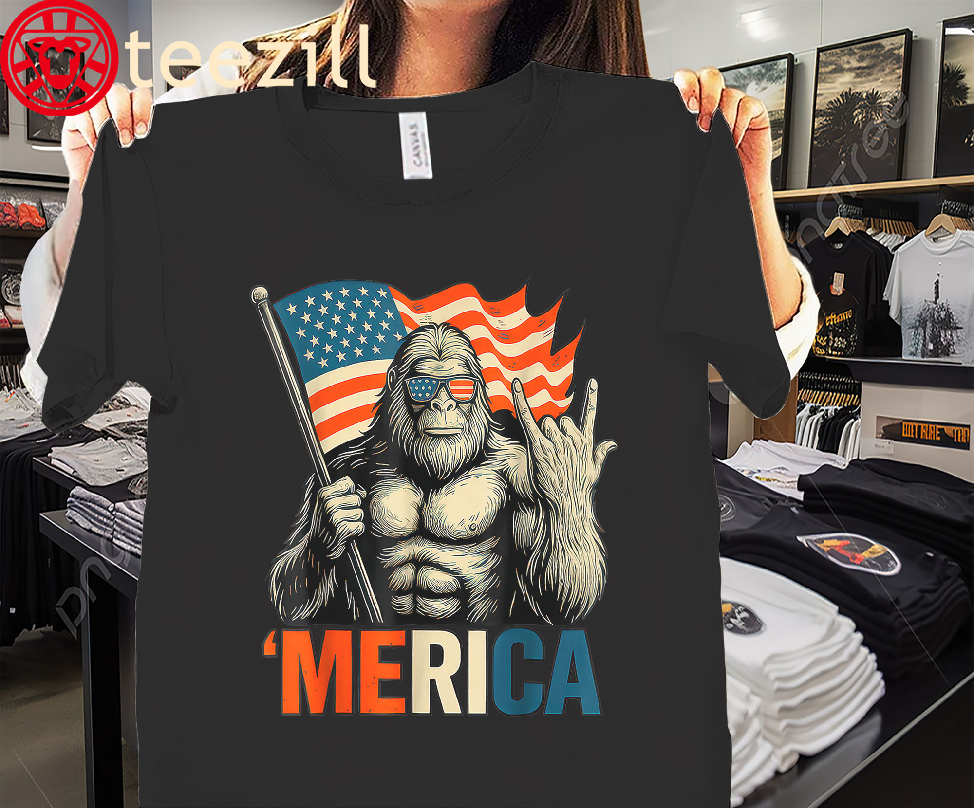 Because nothing screams ‘MERICA like a rockin’ Sasquatch under the stars and stripes.