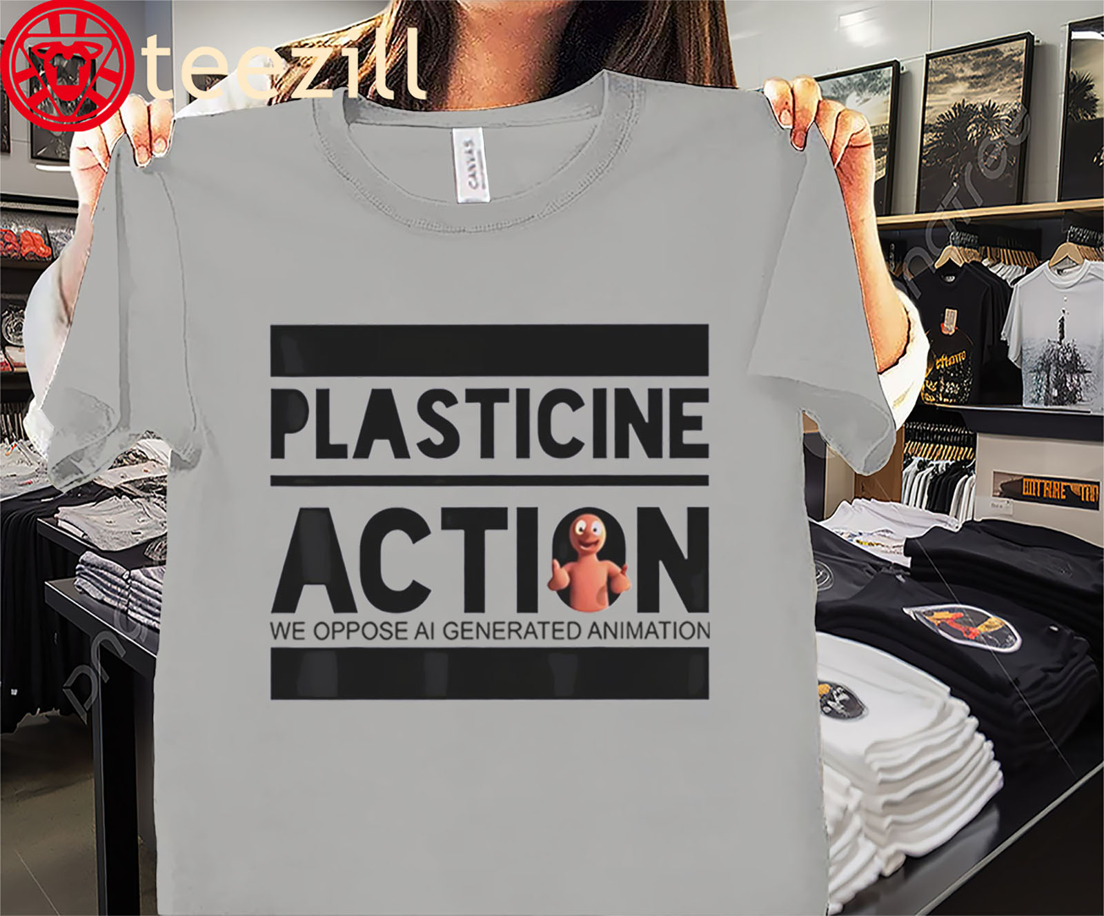 The Plasticine Action “We Oppose AI Generated Animation” Shirt is a hilarious nod to traditional animation lovers who stand proudly against soulless AI shortcuts. Perfect for animators, artists, and film buffs with a sense of humor, this tee lets you take a stand — and get a laugh — at the same time.