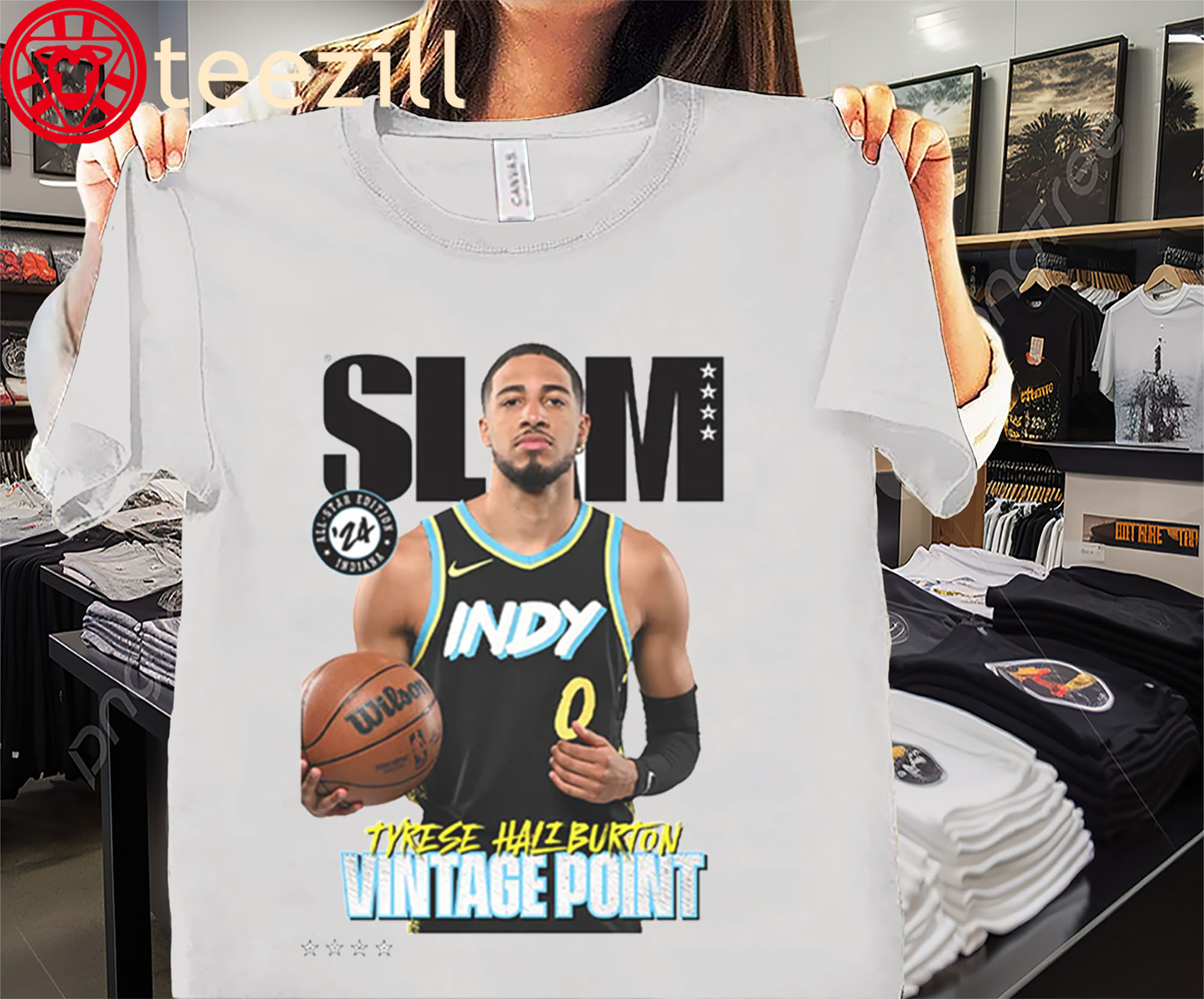 Step into the spotlight with the Vintage Point edition of Tyrese Haliburton’s SLAM cover tee — a tribute to throwback vibes with modern-day dominance. This shirt blends classic hoops culture with the rise of a point guard who’s rewriting the blueprint: flashy passes, fearless leadership, and court vision that hits different.