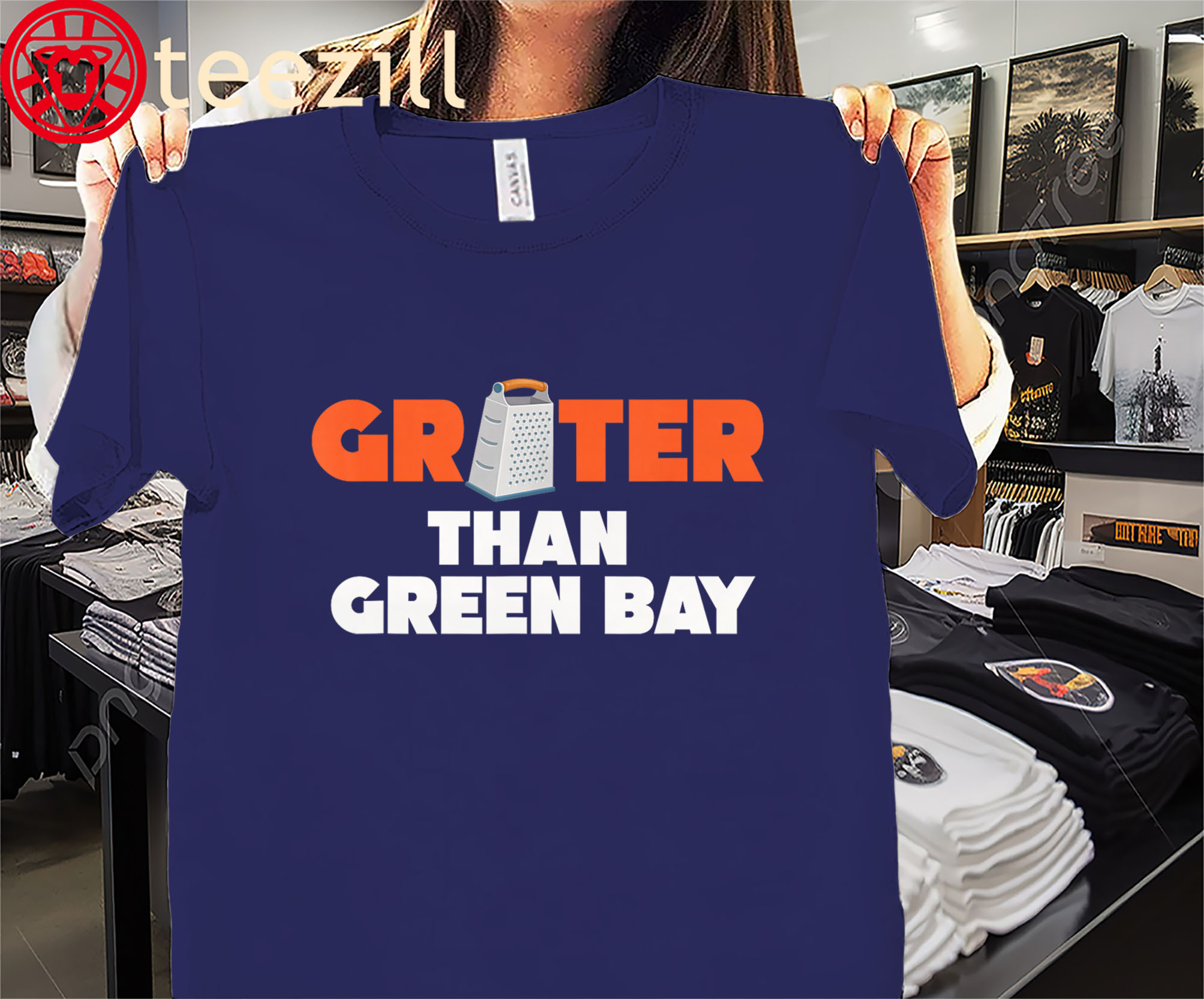 Serve up playful rivalry energy with the Premium Grater Than Green Bay Shirt! Featuring a clever cheese grater graphic and a fun twist on game day smack talk, this tee blends humor, football attitude, and clean design in one standout look.