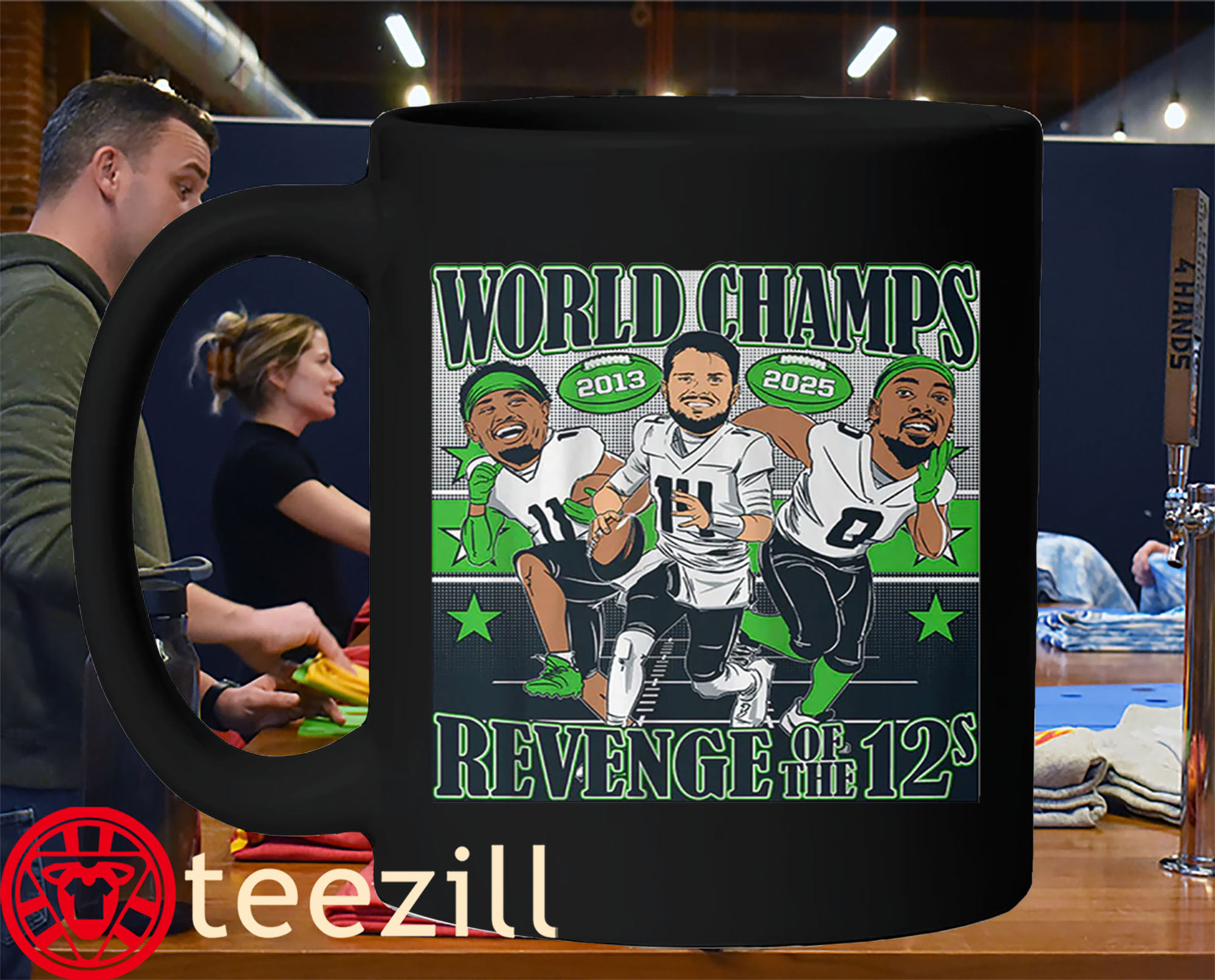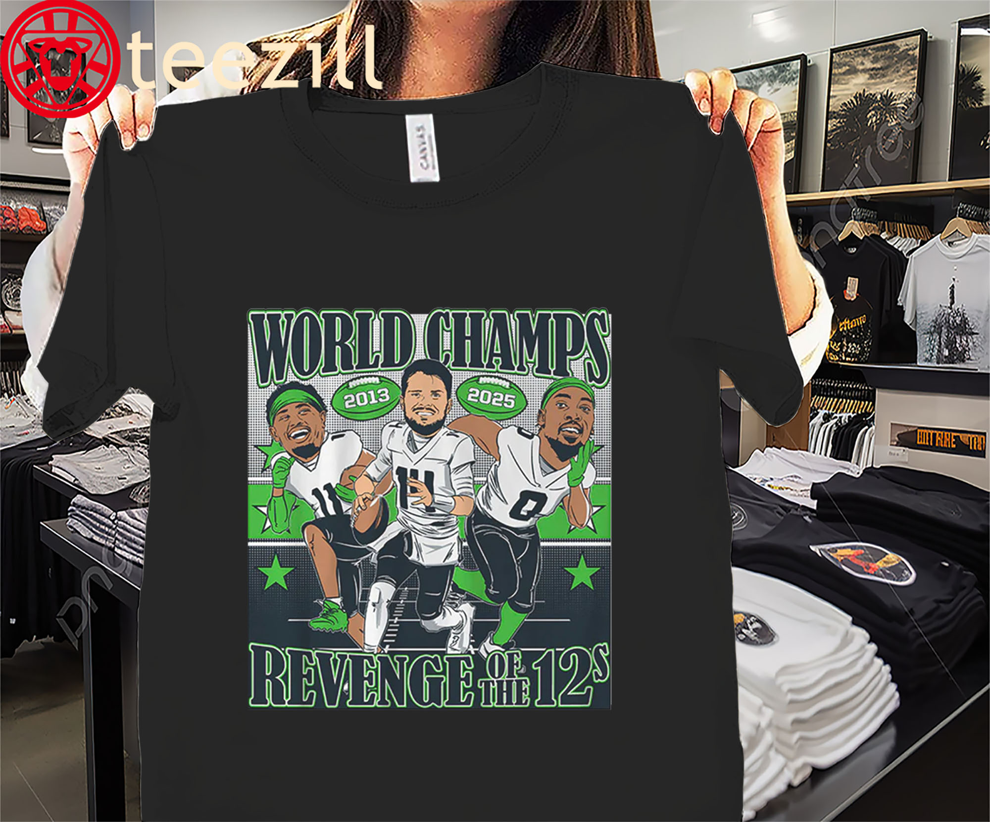 Seattle Football World Champions Caricatures Tee Shirt