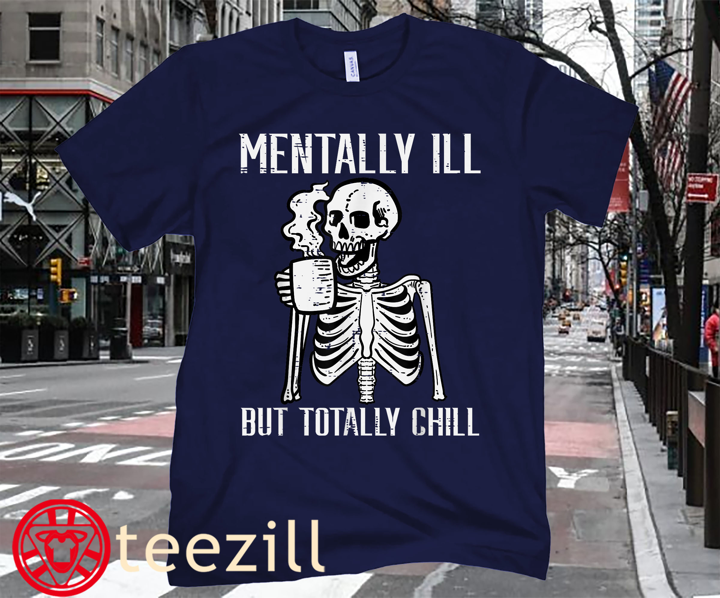 Skeleton Halloween Mentally Ill But Totally Chill T-Shirt