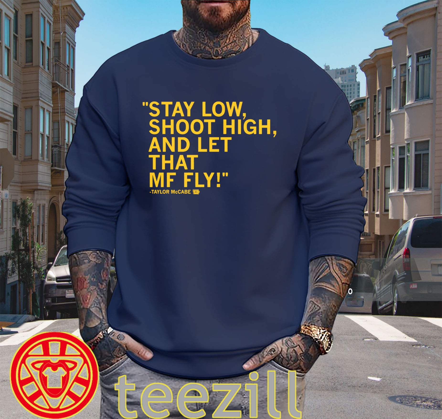 Stay low shoot high shirt, that Taylor McCabe line
