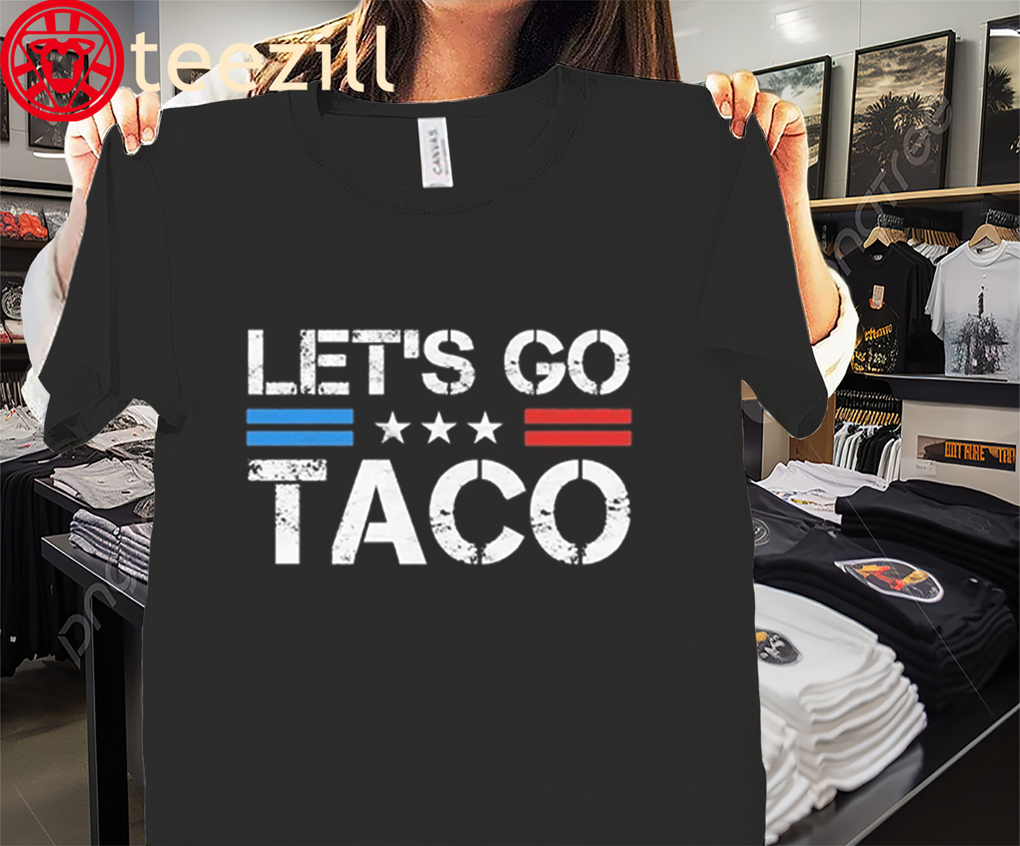 The Let’s Go Taco shirt is for those who love a hot take with their hot sauce. A clever jab at tariff drama and political bluffing, this tee serves up satire with a side of salsa.