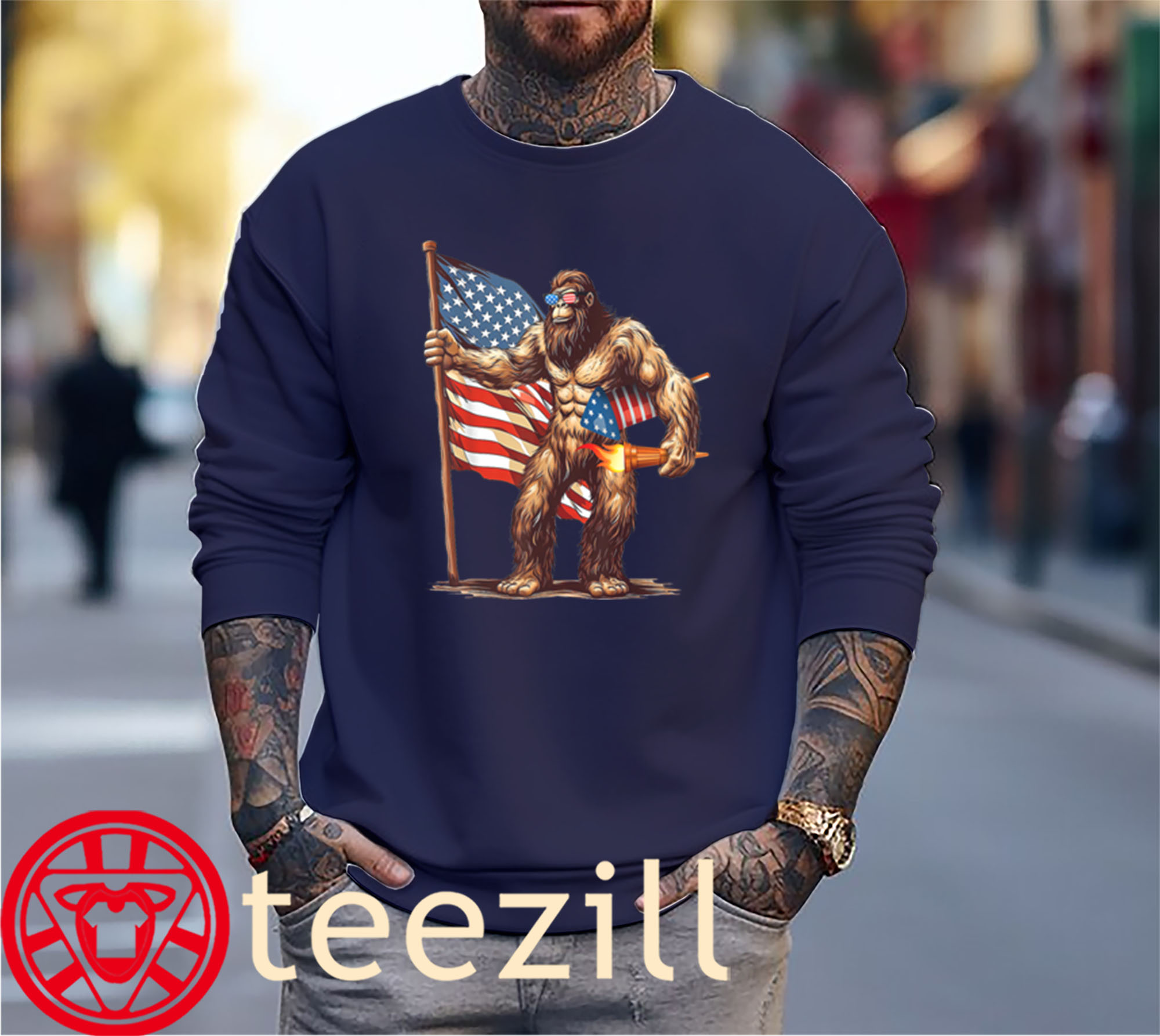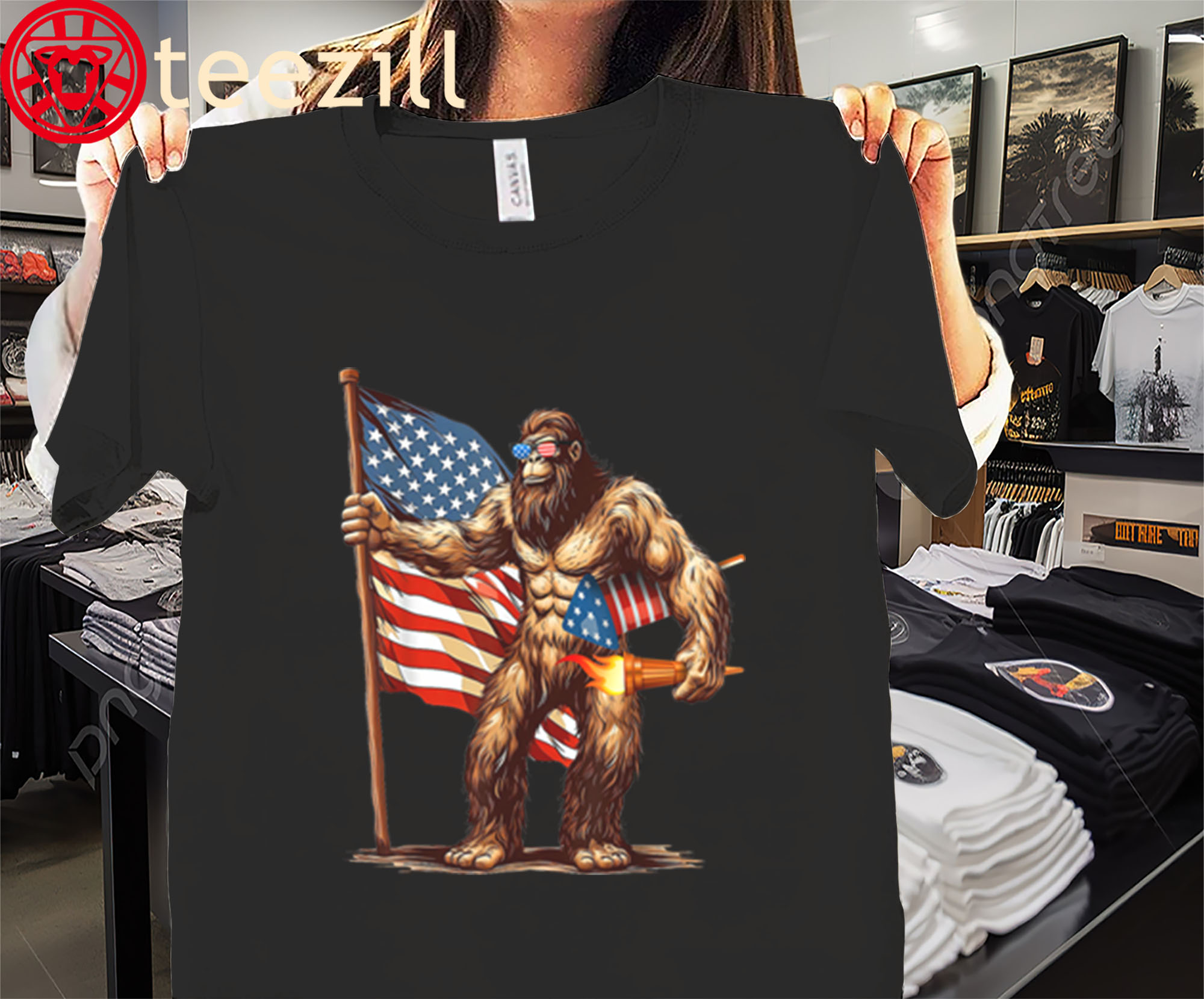 Be the first to review “US Flag Bigfoot Fireworks 4th of July Men Sasquatch Shirt” Cancel reply